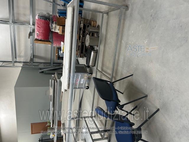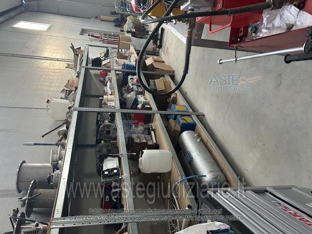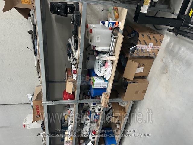 1) N. 02 scaffalature in ferro altezza 3,5 mt; 2) N. 03 banconi 1 mt x 3 mt; 3) N. 03 banconi 80 cm x 2 mt; 4) N. 01 scaffale per minuteria; 5) N. 08 scaffalature in ferro 1,40 x 2 mt; 6) N. 02 carrelli attrezzi; 7) N. 01 pompa vuoto per climatizzatore; 8) N. 02 macchinette per tracce Baier;9) N. 01 aspiratore Baier; 10) N. 01 saldatrice; 11) N. 01 macchina per tenuta sotto pres-sione; 12) N. 01 climbatrice per capi corda media tensione; 13) N. 01 avvitatore; 14) N. 01 trapano; 15) N. 01 pressa idraulica; 16) N. 03 boiler con due serpentine; 17) N. 01 morsa; 18) N. 05 bombole ad idrogeno;