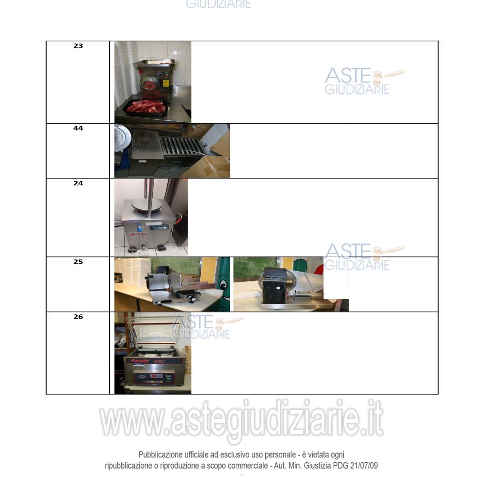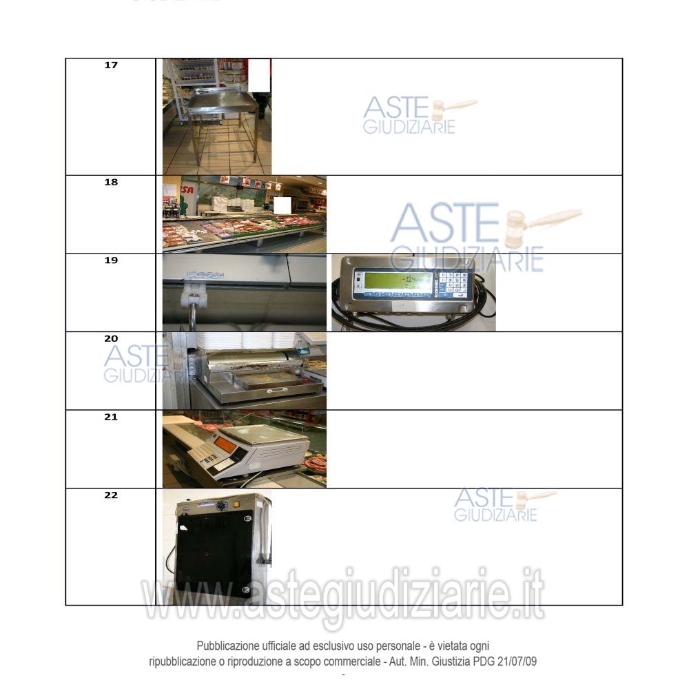 Vendita all'asta Senza incanto, con gara telematica asincrona - LOTTO UNICO: Complesso di beni mobili strumentali composto da:• A) attrezzature di ufficio;• B) attrezzature da bar;• C) scaffalature;• D) muletto, idropulitrice, motoscopa, motospazzola, transpallet, ed altro;• E) celle frigorifere, banconi, attrezzatura da macelleria e salumeria, espositori, vetrine e banchi;il tutto analiticamente descritto nella perizia di stima del 15/07/2022, anche per quanto attiene lo stato d’uso e a cui si rinvia per ogni migliore e completa descrizione. Prezzo base € 12.300,00 (offerta minima € 12.300,00). Data inizio operazioni di vendita: 24/03/2026 ore 11:00. In caso di più offerte valide si procederà a gara che terminerà il 31/03/2026 ore 11:00. Giudice Dott. Valentina Stabile. Curatore Avv. Salvatore Galluzzo. Rif. Tribunale di Sciacca - Fallimentare (nuovo rito) n. 1/2021