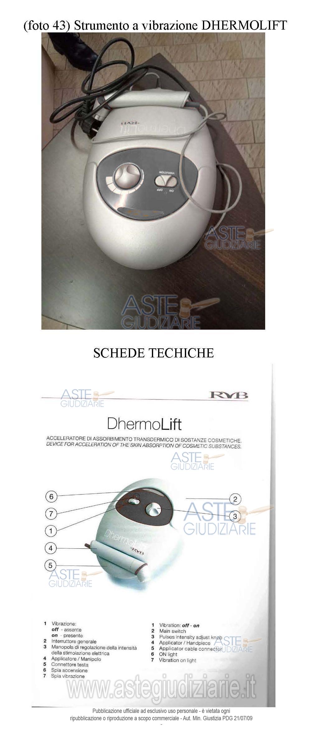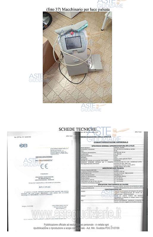 Vendita all'asta Senza incanto, con gara telematica asincrona - LOTTO 1: Lettino abbronzante, luce pulsata, pressoterapia, lettino per trattamento estetico, poltrona manicure, tavolino manicure, lampada nera con lente, pressoterapia, scaldacera, luce pulsata, dermolift, pos marca ingenico, carrello scaldafanghi a tre fornelli, lettino bianco, sgabelli, macchinario esafacciale, termocoperta, tutto come meglio descritto in perizia di stima. Prezzo base € 4.500,00 (offerta minima € 3.375,00). Data inizio operazioni di vendita: 27/11/2025 ore 11:00. In caso di più offerte valide si procederà a gara che terminerà il 04/12/2025 ore 11:00. Giudice Dott. Claudia Tordo Caprioli. Rif. Tribunale di Terni - Liquidazione controllata(cci) n. 10/2024