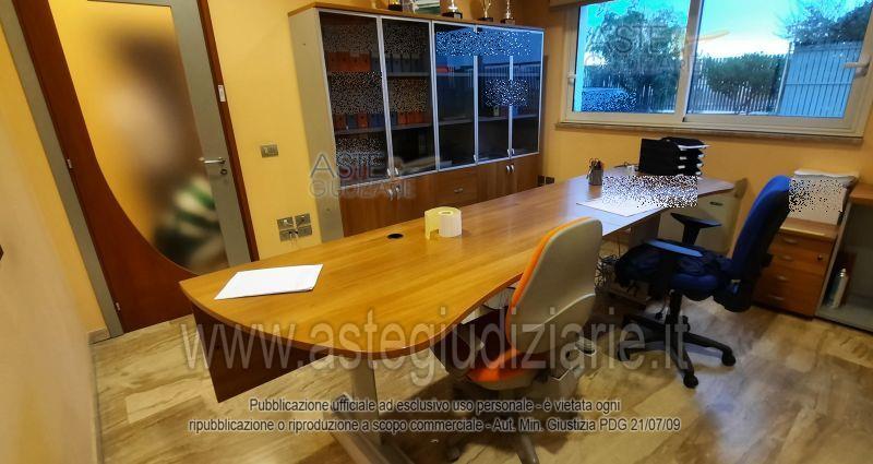 Vendita all'asta Senza incanto, con gara telematica asincrona - LOTTO 141: N. 4 scrivanie angolari colore ciliegio; n. 4 cassettiere a quattro cassetti· n. 1 mobile bas . a quattro ante