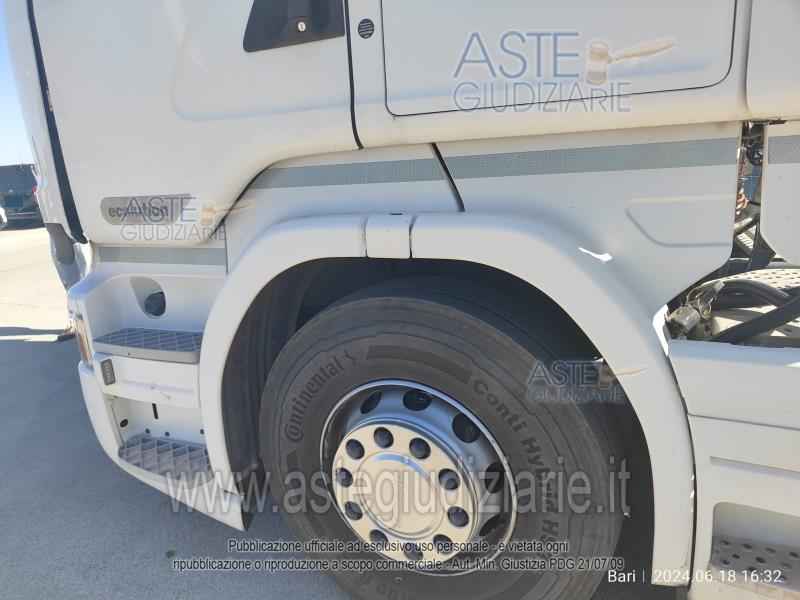 Vendita all'asta Senza incanto, con gara telematica asincrona - LOTTO 3: Trattore per semirimorchio SCANIA N320 C5W-801152A-3AX, tg FB…LS, immatricolazione 2016, km. 640.000 circa, kw 331, cilindrata 12742, alimentazione gasolio; provvisto di chiave. Prezzo base € 13.445,12 (offerta minima € 10.083,84). Data inizio operazioni di vendita: 25/03/2026 ore 11:00. Giudice Dott. Michele De Palma. Curatore Avv. Francesco Saverio Belviso - Email "francesco.belviso@polisavvocati.com". Rif. Tribunale di Bari - Liquidazione giudiziale(cci) n. 48/2024