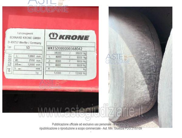 Vendita all'asta Senza incanto, con gara telematica asincrona - LOTTO 6: Semirimorchio targato XAxxxHD, a sponde basse con centina e telone di colore rosso, quattro assi, lunghezza cm 1.386, larghezza cm 255, marca BERNARD KRONE, modello SDP27, telaio WKESD000000368042, ultima immatricolazione il 06/04/2018 (già targa francese BWxxxLC), il mezzo presenta ammaccature sparse ed incidentato, ruote con pneumatici ovalizzati”. Prezzo base € 1.500,00 (offerta minima € 1.125,00). Data inizio operazioni di vendita: 13/11/2025 ore 11:00. Giudice Dott. Sebastiano Cassaniti. Rif. Tribunale di Catania - Liquidazione giudiziale(cci) n. 186/2023