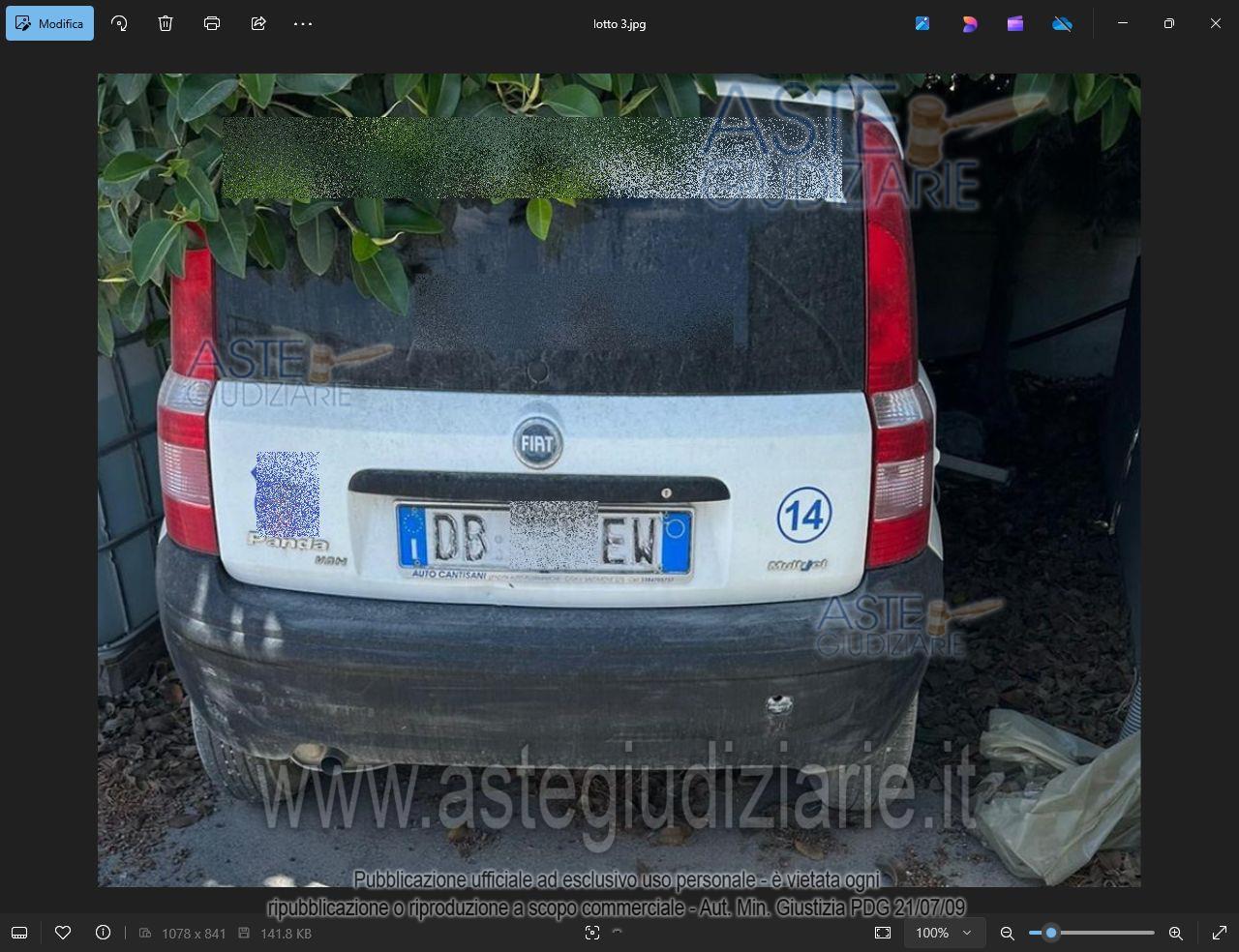 Vendita all'asta Senza incanto - LOTTO 3: Autocarro Fiat Panda tg DBxxxEW, anno di immatricolazione 2006, alimentazione a gasolio, CC 1248, non marciante. Prezzo base € 1.500,00 (offerta minima € 1.125,00). Data vendita 05/12/2025 ore 16:30. Giudice Aniello Maria De Piano. Custode Giudiziario Dott. Serena Iuliani - Email "serena.iuliani66@gmail.com". Rif. Tribunale di Lagonegro - Liquidazione giudiziale(cci) n. 8/2023
