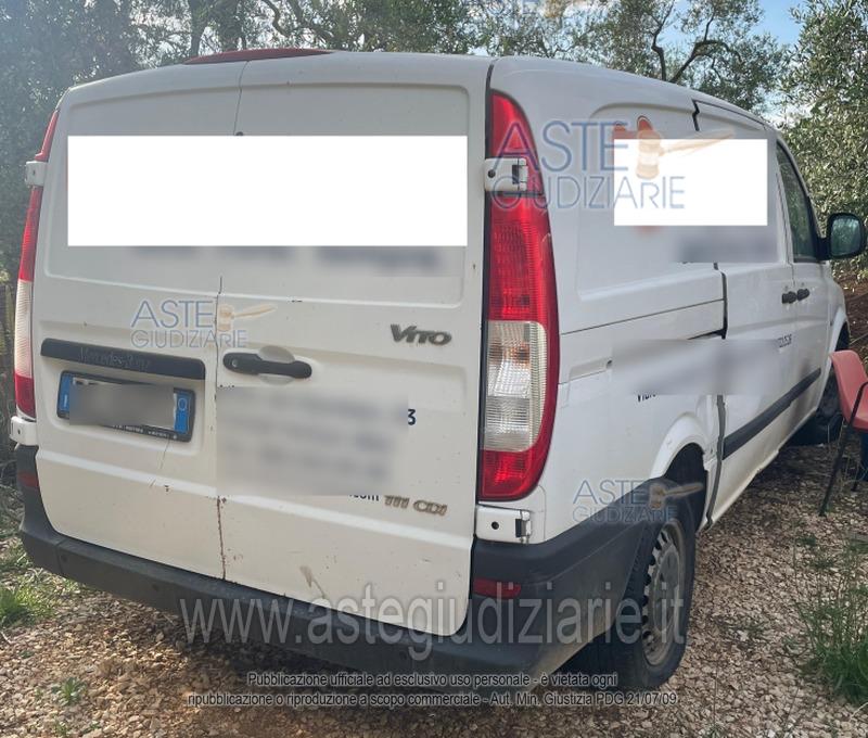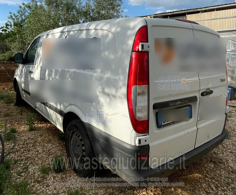 Vendita all'asta Senza incanto, con gara telematica asincrona - LOTTO 1: Lotto A - Autocarro MERCEDES VITO, targato DExxxFC, marca DAIMLERCHRY-SLER, numero di identificazione: WDF63960313161280. L’ultima revisione è stata eseguita il 18.11.2022 con scadenza nel mese di novembre 2024. Il veicolo risulta danneggiato sulla fiancata destra posteriore e si presenta con batteria scarica, pertanto, non è stato possibile verificarne il chilometraggio, è stato dichiarato circa 295.000 km. Prezzo base € 600,00 (offerta minima € 450,00). Data inizio operazioni di vendita: 25/11/2025 ore 11:00. In caso di più offerte valide si procederà a gara che terminerà il 02/12/2025 ore 11:00. Giudice Dott. Maria Azzurra Guerra. Curatore Avv. Giuseppe Monterisi - Email "tralg222025@procedurepec.com". Rif. Tribunale di Trani - Liquidazione giudiziale(cci) n. 22/2025