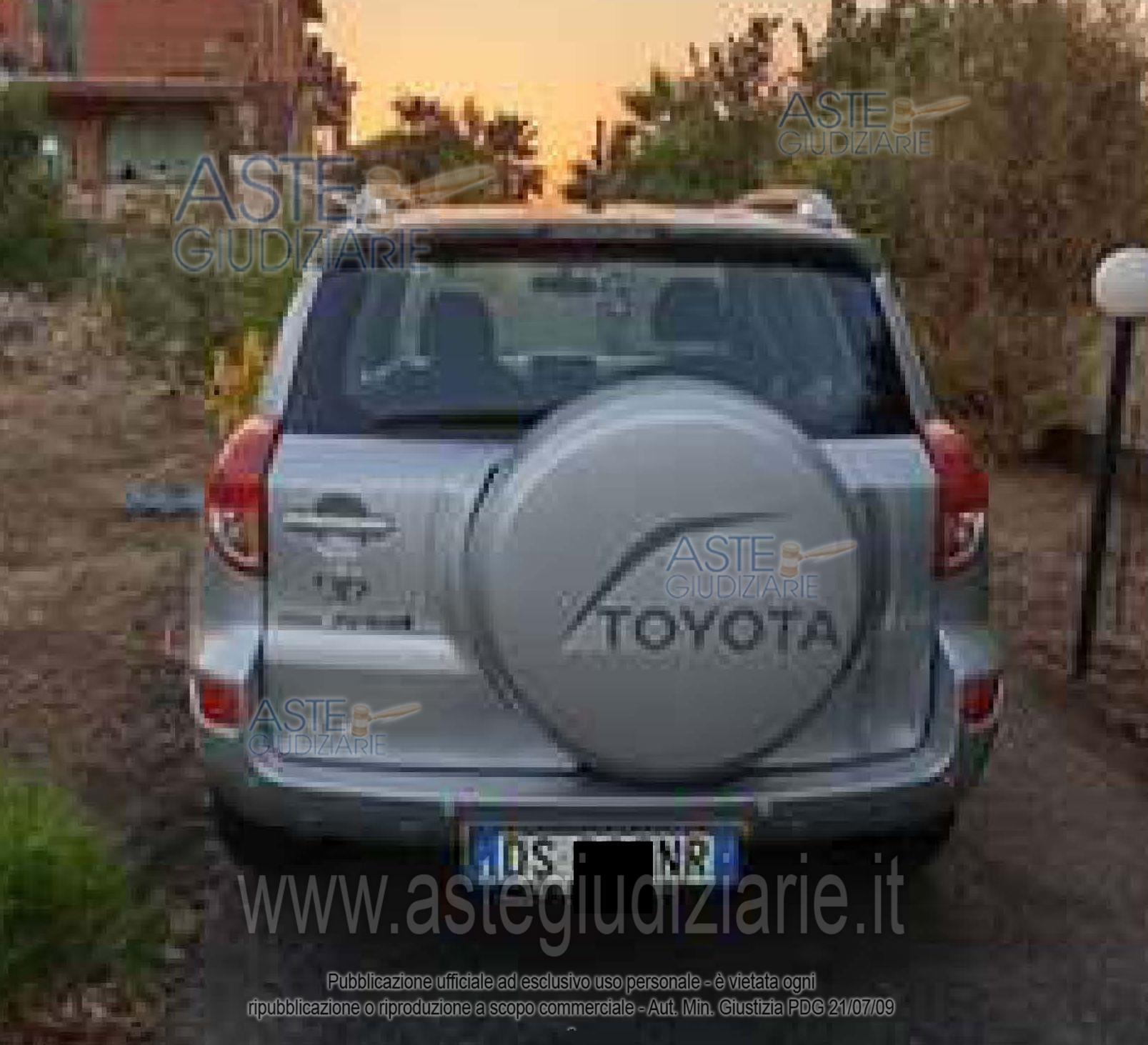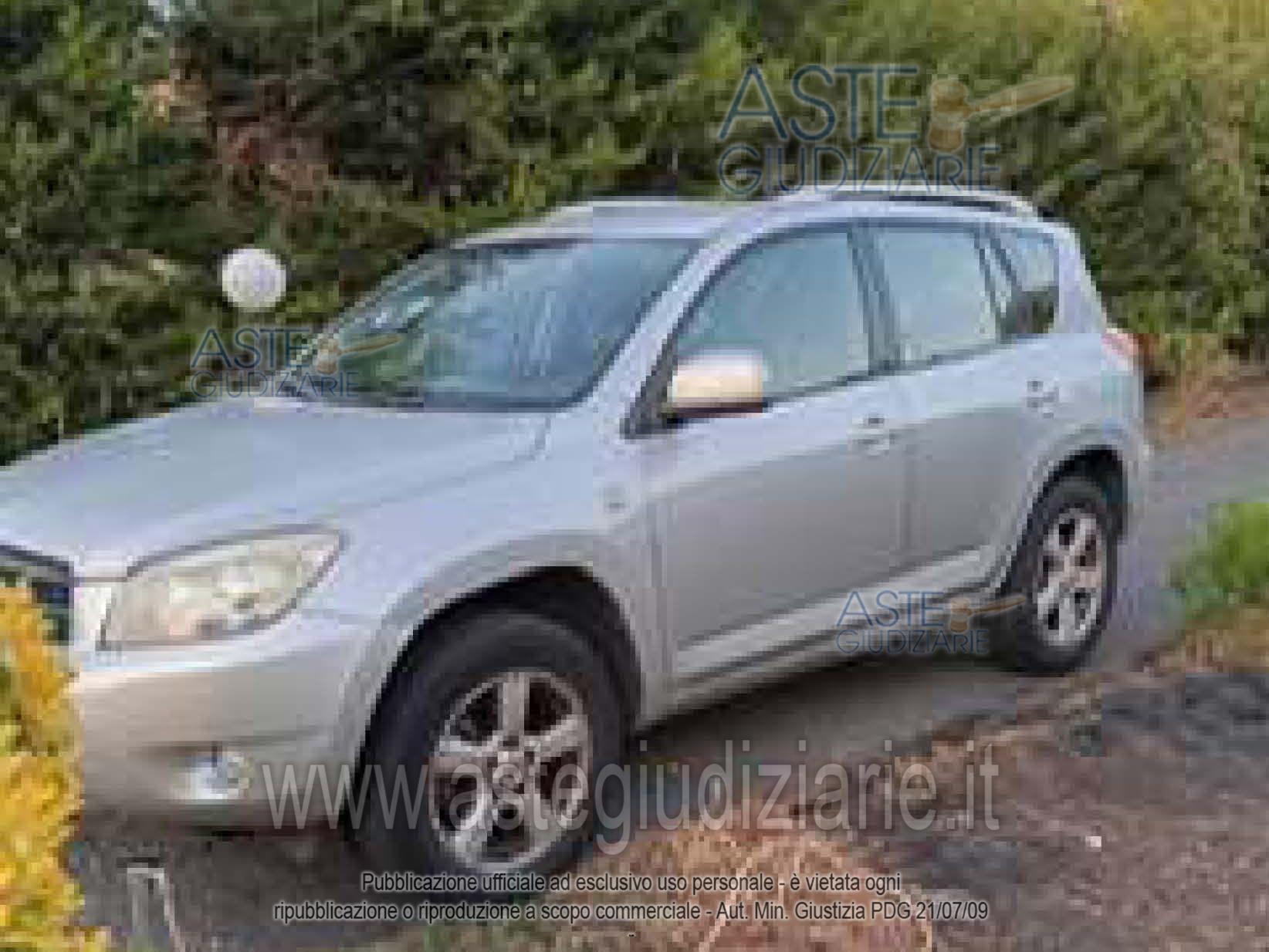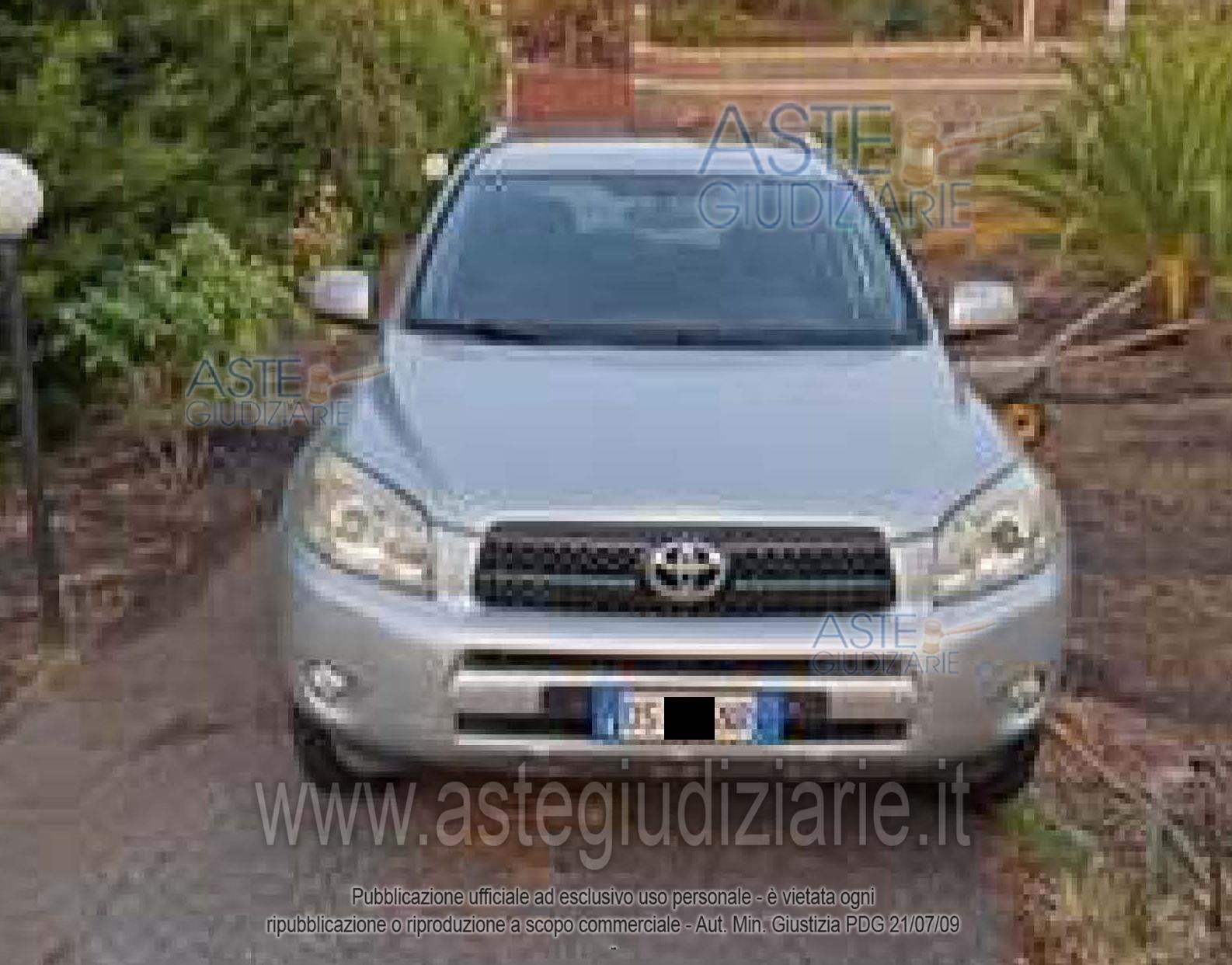 Vendita all'asta Senza incanto, con gara telematica asincrona - LOTTO UNICO: Autovettura Toyota Rav 4 Cc 2231 tg: DSxxxNR immatr. 30/09/2008, km 156.000, alim. gasolio. Marciante. In possesso di: Chiavi, Certificato di Proprietà, Libretto Circolazione. Interventi urgenti da effettuare: sostituzione ammortizzatori, frizione, copertoni, guarnizione. Sul mezzo grava un provvedimento generico (sentenza di omologa della liquidazione) la cui cancellazione è a carico dell’aggiudicatario. Prezzo base € 2.532,00 (offerta minima € 1.899,00). Data inizio operazioni di vendita: 10/02/2026 ore 11:00. Giudice Dott. Roberto Paolo Cordio. Rif. Tribunale di Catania - Liquidazione controllata(cci) n. 25/2024