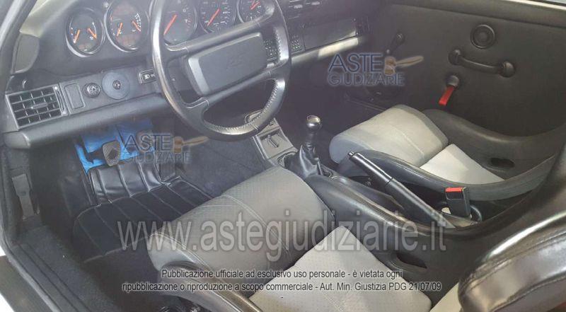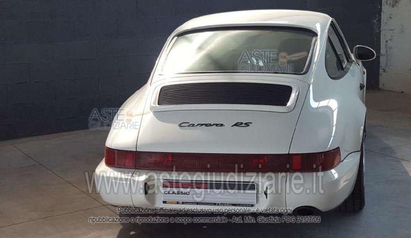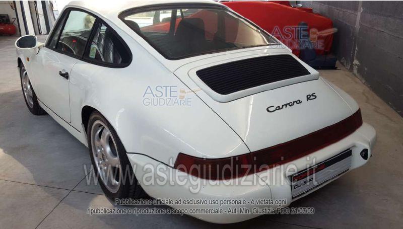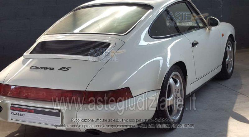 Vendita all'asta Senza incanto, con gara telematica asincrona - LOTTO 1: Porsche 911 Carrera RS 3.6 (serie 964), targata BSExxxxx, anno 1992, colore bianco, cambio manuale, chilometraggio rilevato circa 18.937 km. L'autovettura si presenta in ottime condizioni generali, con interni sportivi ben conservati. Prezzo base € 315.000,00 (offerta minima € 236.250,00). Data inizio operazioni di vendita: 12/05/2026 ore 11:00. In caso di più offerte valide si procederà a gara che terminerà il 19/05/2026 ore 11:00. Giudice Roberto Cordio. Rif. Tribunale di Catania - Liquidazione controllata(cci) n. 24/2024