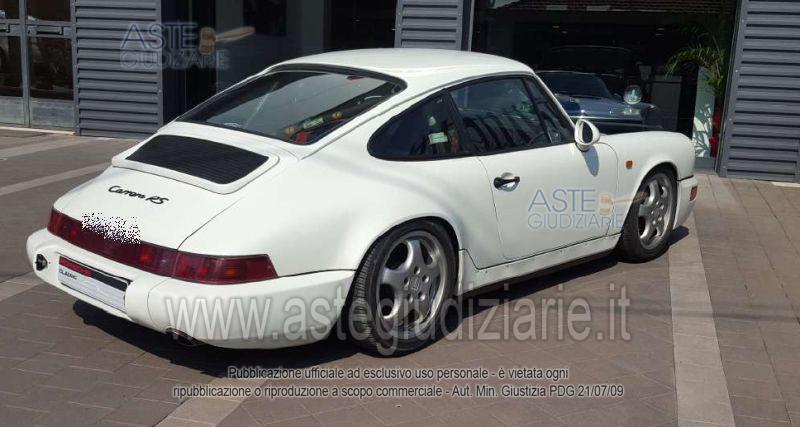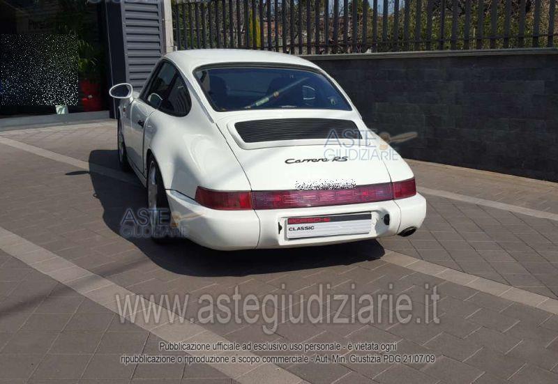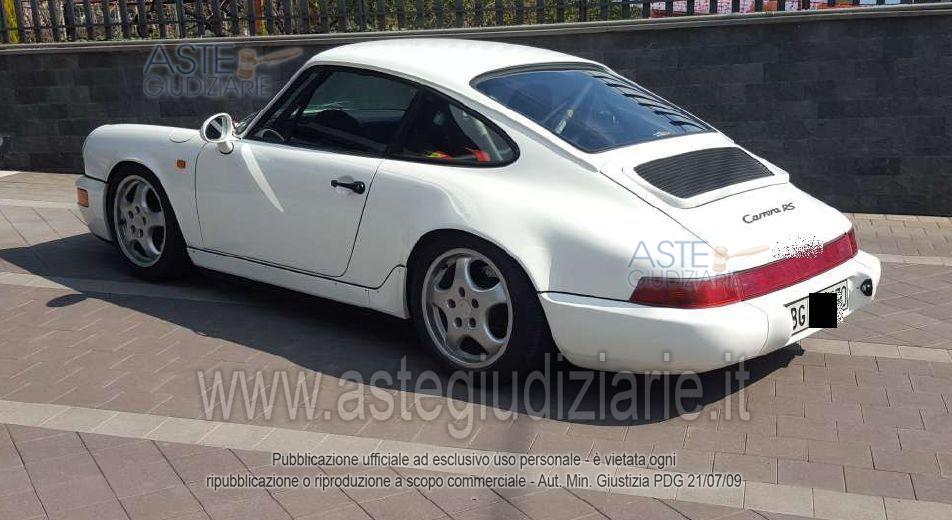 Vendita all'asta Senza incanto, con gara telematica asincrona - LOTTO 3: Porsche 911 Carrera RS 3.6 (serie 964) targata BGBxxxxx, anno presunto 1991, colore bianco, cambio manuale, chilometraggio rilevato circa 31.836 km, configurazione "pista" con roll-bar interno e cinture sportive. Prezzo base € 270.000,00 (offerta minima € 202.500,00). Data inizio operazioni di vendita: 12/05/2026 ore 11:00. In caso di più offerte valide si procederà a gara che terminerà il 19/05/2026 ore 11:00. Giudice Roberto Cordio. Rif. Tribunale di Catania - Liquidazione controllata(cci) n. 24/2024