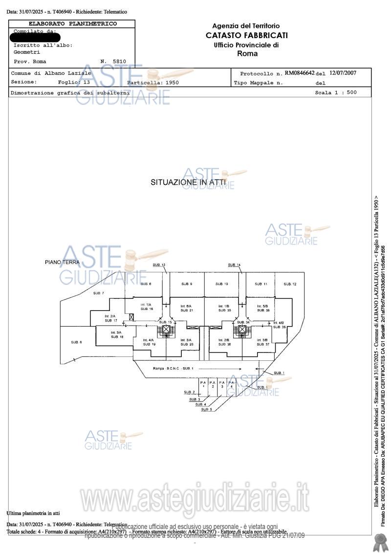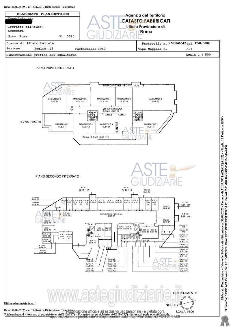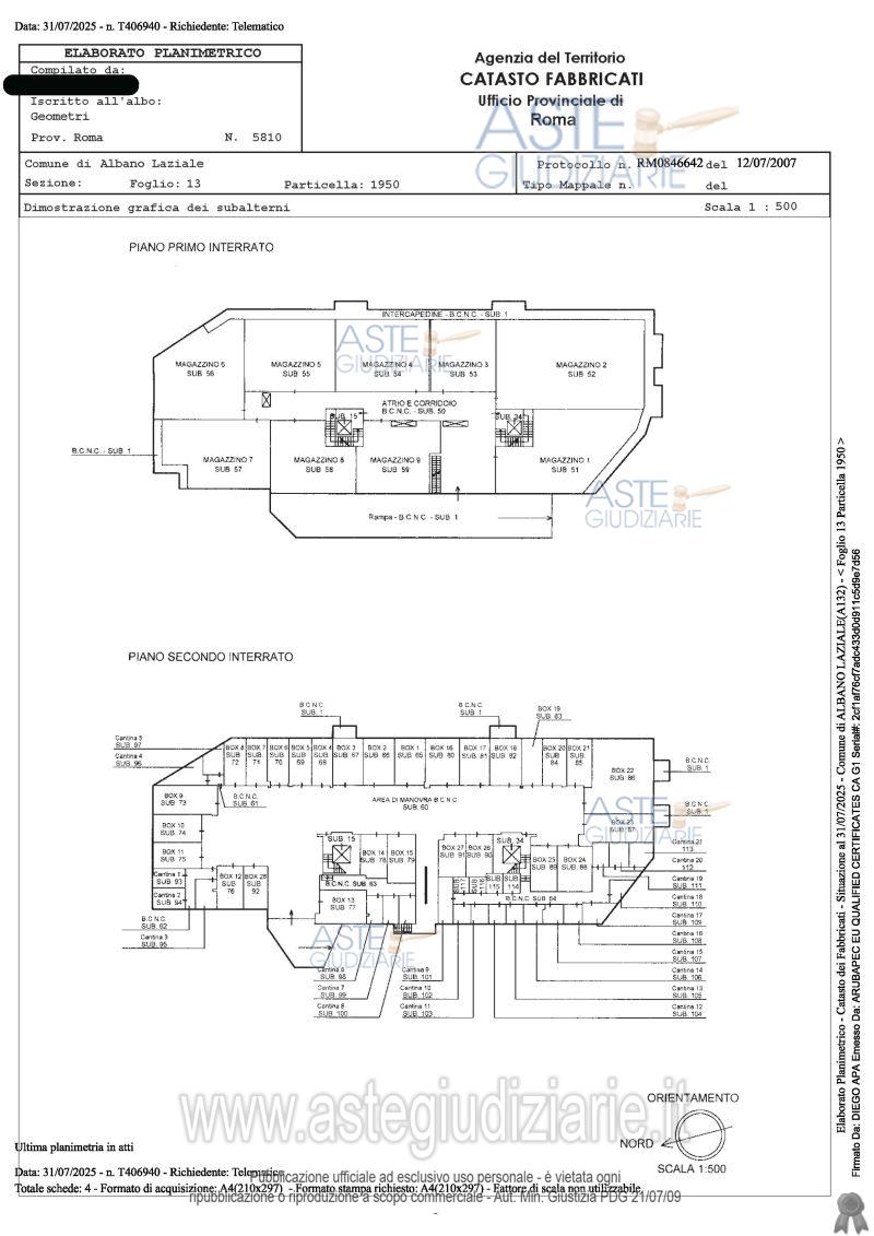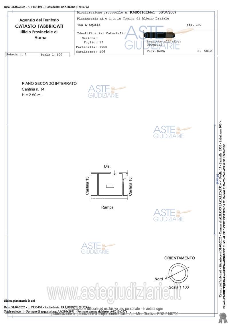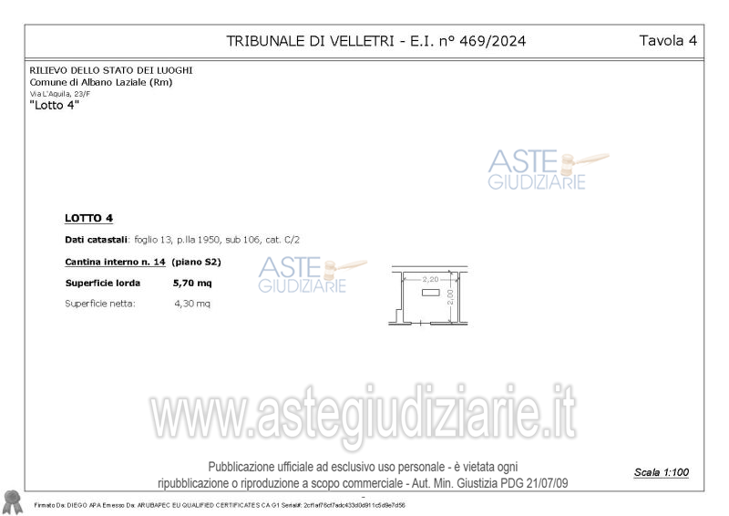 Vendita all'asta Senza incanto, con gara telematica asincrona - LOTTO 4: Locale cantina ubicato ad Albano Laziale (RM) Via l’Aquila n. 23/F, interno 14, posto al piano S2 dell’edificio (categoria catastale C/2), superficie catastale totale 5 mq. Prezzo base € 5.000,00 (offerta minima € 3.750,00). Data inizio operazioni di vendita: 16/04/2026 ore 15:00. Giudice Dott. Dott.Ssa Raffaella Calvanese. Professionista delegato alla vendita Avv. Avv. Annamaria Verducci - Email "annamariaverducci@alice.it". Custode Giudiziario Avv. Avv. Annamaria Verducci - Email "annamariaverducci@alice.it". Rif. Tribunale di Velletri - Espropriazione immobiliare (cartabia) n. 469/2024