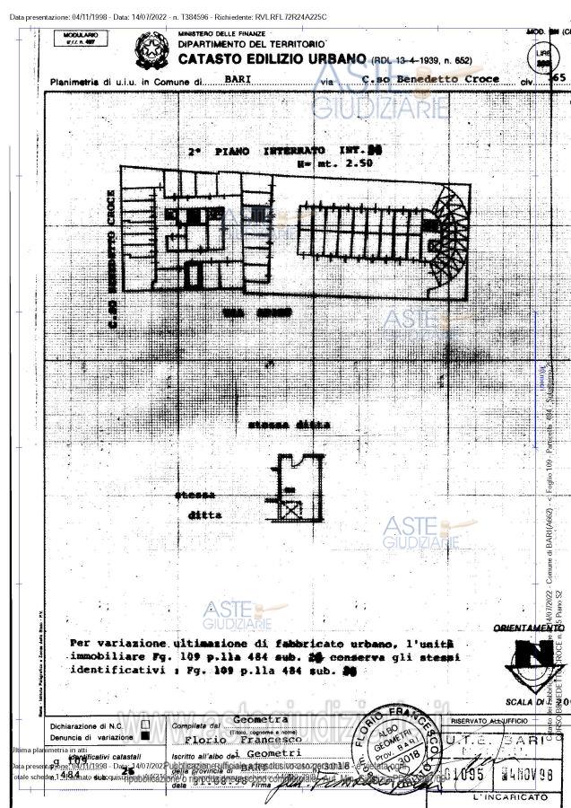 Vendita all'asta Senza incanto, con gara telematica asincrona - LOTTO 6: Vollständiges und perfektes Eigentum des Kellers, mit einer Fläche von ca. 13 Quadratmetern, im zweiten Untergeschoss eines großen Wohngebäudes gelegen, mit Zugang durch ein Tor in der Via Corso Benedetto Croce Nr. 165. . Prezzo base € 2.137,00 (offerta minima € 1.603,00). Data inizio operazioni di vendita: 23/04/2026 ore 12:00. Giudice Dott. Raffaella Simone. Curatore Annalisa Azzariti. Rif. Tribunale di Bari - Fallimentare (nuovo rito) n. 169/2019