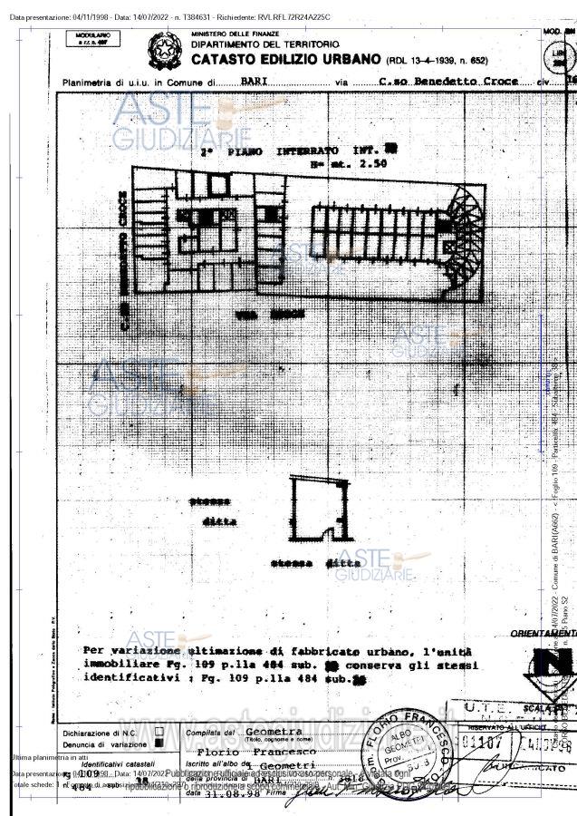Vendita all'asta Senza incanto, con gara telematica asincrona - LOTTO 13: Piena e perfetta proprietà della cantina, della superficie di 14 mq circa, posta al piano secondo interrato. Prezzo base € 3.006,00 (offerta minima € 2.255,00). Data inizio operazioni di vendita: 14/01/2026 ore 12:00. Giudice Dott. Raffaella Simone. Curatore Annalisa Azzariti. Rif. Tribunale di Bari - Fallimentare (nuovo rito) n. 169/2019