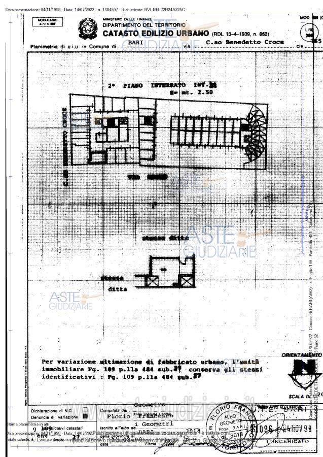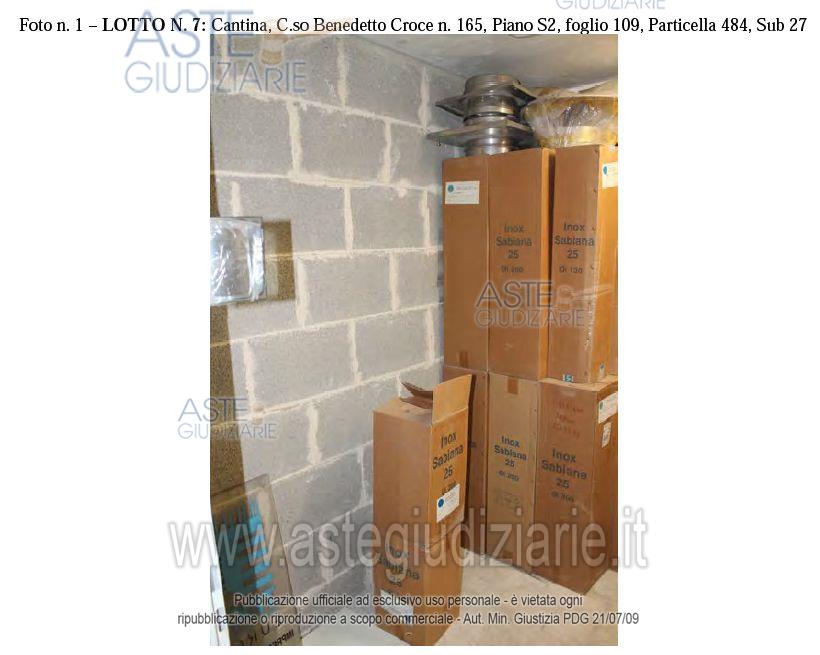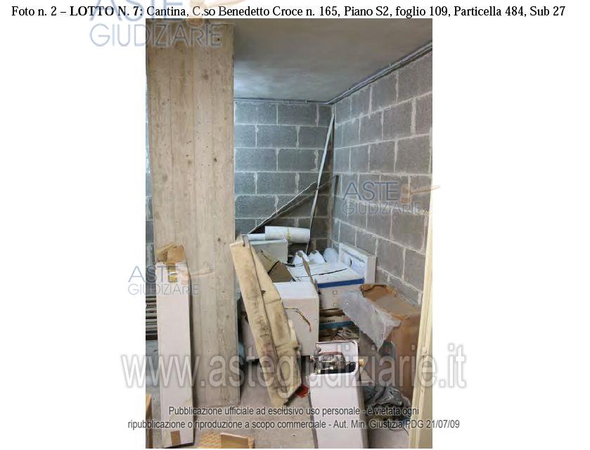 Vendita all'asta Senza incanto, con gara telematica asincrona - LOTTO 7: Piena e perfetta proprietà della cantina, della superficie di 17 mq circa, posta al piano secondo interrato di un maggior fabbricato residenziale, avente accesso da un portone posto sul Corso Benedetto Croce n. 165. Prezzo base € 3.481,00 (offerta minima € 2.611,00). Data inizio operazioni di vendita: 14/01/2026 ore 12:00. Giudice Dott. Raffaella Simone. Curatore Annalisa Azzariti. Rif. Tribunale di Bari - Fallimentare (nuovo rito) n. 169/2019