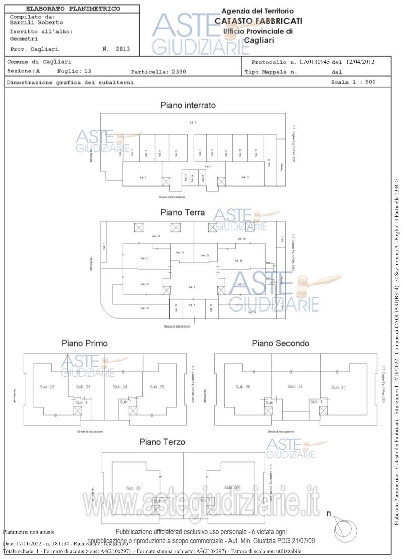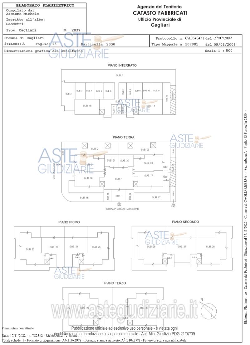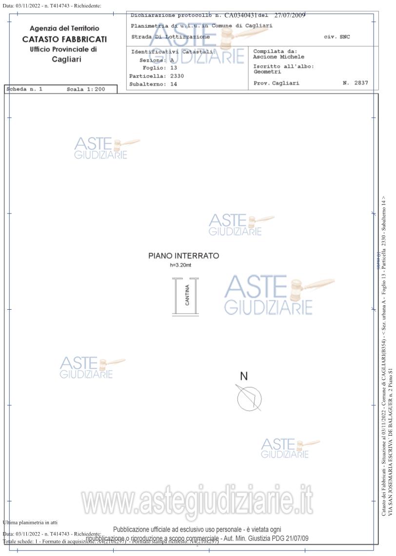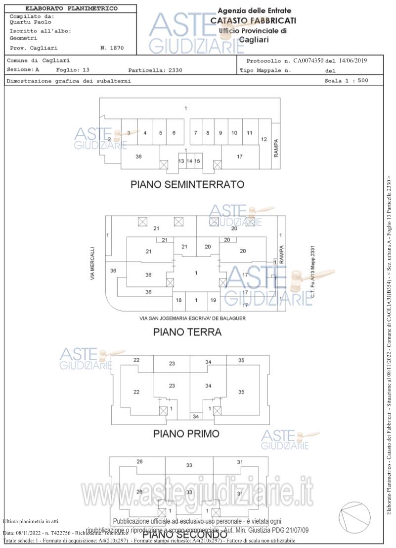 Vendita all'asta Senza incanto, con gara telematica asincrona - LOTTO 8: Quota pari all’intero del diritto di proprietà di una cantina chiudibile con porta metallica ubicata al piano interrato e distinto al CF Foglio A/13 Mapp. 2330, sub 14 Cat. C/2, classe 2, sup. cat 7 mq, rendita €50,61=. Prezzo base € 3.600,00 (offerta minima € 2.700,00). Data inizio operazioni di vendita: 19/11/2025 ore 15:00. Giudice Silvia Cocco. Professionista delegato alla vendita Avv. Laura Fagioli - Email "avv.laura.fagioli@tiscali.it"; Tel. 0704510261. Custode Giudiziario Ivg Cagliari - Email "ivg.visiteimmobili@tiscali.it"; Tel. 0702299036. Rif. Tribunale di Cagliari - Esecuzione immobiliare post legge 80 n. 270/2017