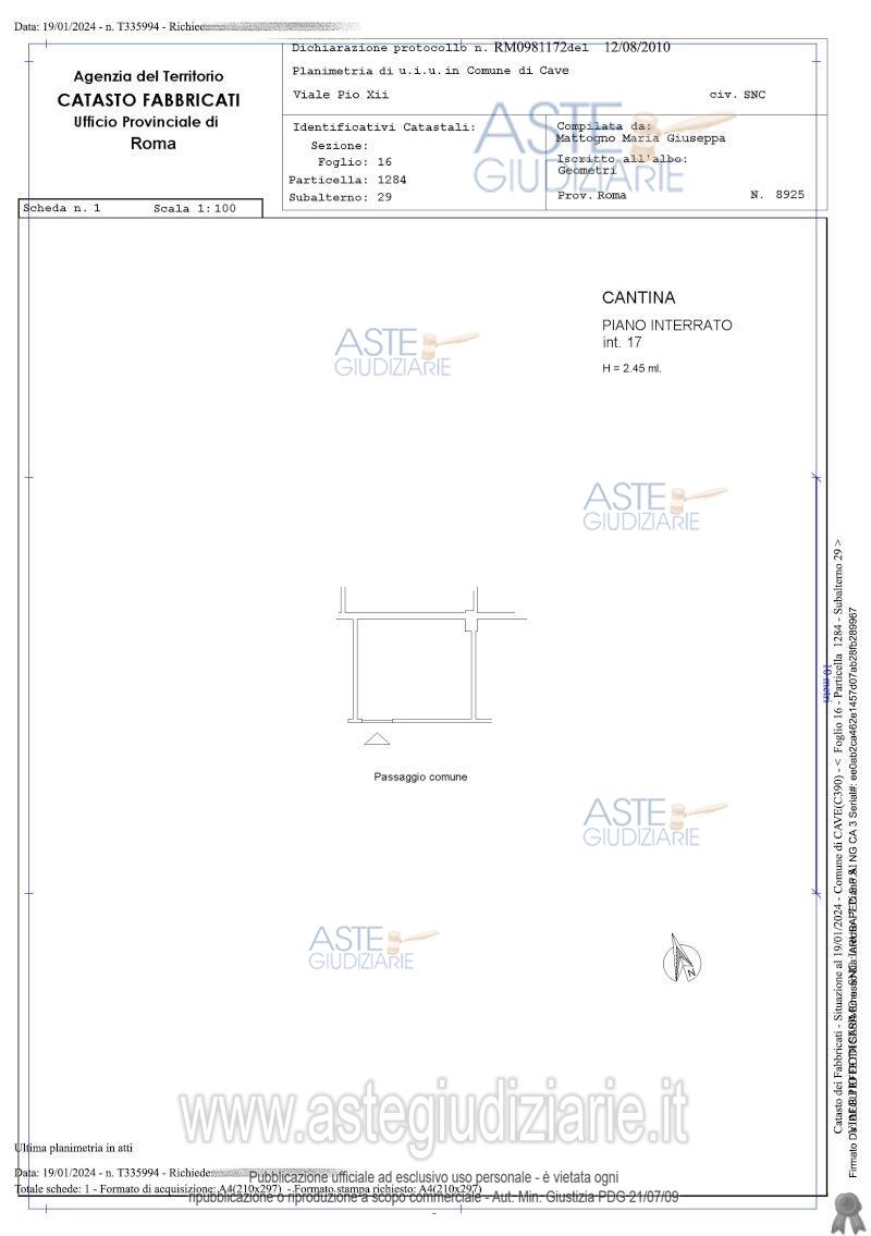 Vendita all'asta Senza incanto, con gara telematica asincrona - LOTTO 7: Immobile Uso magazzino al piano S1 distinto con sub 29 (interno 17); . Prezzo base € 2.000,00 (offerta minima € 1.500,00). Data inizio operazioni di vendita: 09/12/2025 ore 14:00. Professionista delegato alla vendita Avv. Tonino Bernardini - Email "bernardini@bernardiniecoccia.it"; Cell. 3478464384. Custode Giudiziario Ivg Di Roma Srl - Email "pvp@visiteivgroma.it"; Tel. 0689569801. Rif. Tribunale di Tivoli - Esecuzione immobiliare post legge 80 n. 381/2023
