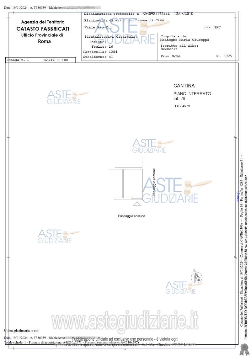 Vendita all'asta Senza incanto, con gara telematica asincrona - LOTTO 10: Immobile Uso magazzino al piano S1 distinto con sub 41 (interno 29); . Prezzo base € 1.100,00 (offerta minima € 825,00). Data inizio operazioni di vendita: 09/12/2025 ore 14:00. Professionista delegato alla vendita Avv. Tonino Bernardini - Email "bernardini@bernardiniecoccia.it"; Cell. 3478464384. Custode Giudiziario Ivg Di Roma Srl - Email "pvp@visiteivgroma.it"; Tel. 0689569801. Rif. Tribunale di Tivoli - Esecuzione immobiliare post legge 80 n. 381/2023