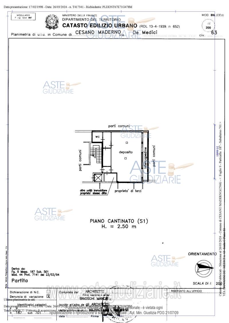 Vendita all'asta Senza incanto, con gara telematica sincrona - LOTTO 1: Deposito artigianale di mq 68. PER L’ASSISTENZA ALLA PARTECIPAZIONE ALL’ASTA DEI BENI IMMOBILI E MOBILI CI SI PUO’ RIVOLGERE ALL’I.V.G. DI MONZA. IL TRIBUNALE DI MONZA NON HA CONFERITO ALCUN INCARICO A INTERMEDIARI/ AGENZIE IMMOBILIARI PER LA PUBBLICITÀ GIUDIZIARIA E L’ASSISTENZA ALLA PARTECIPAZIONE ALL’ASTA. Prezzo base € 22.250,00 (offerta minima € 16.700,00). Data vendita 17/12/2025 ore 14:30. Giudice Caterina Rizzotto. Professionista delegato alla vendita Dott. Stefania Aletto - Email "info@studioaletto.it". Custode Giudiziario Stefania Aletto. Rif. Tribunale di Monza - Espropriazione immobiliare (cartabia) n. 503/2023