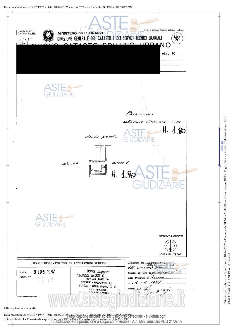 Vendita all'asta Senza incanto, con gara telematica sincrona mista - LOTTO 5: intera proprietà di cantina ubicata a Genova (GE) - viale C. Canepa, civ. 10 piano T. Prezzo base € 1.900,00 (offerta minima € 1.426,00). Data vendita 15/05/2026 ore 16:00. Professionista delegato alla vendita Avv. Federica Canu - Email "f.canu@libero.it"; Cell. 3455933377. Custode Giudiziario Dott. Sovemo Srl - Email "visitegenova@sovemo.com"; Tel. 0105299253. Rif. Tribunale di Genova - Espropriazione immobiliare (cartabia) n. 186/2025