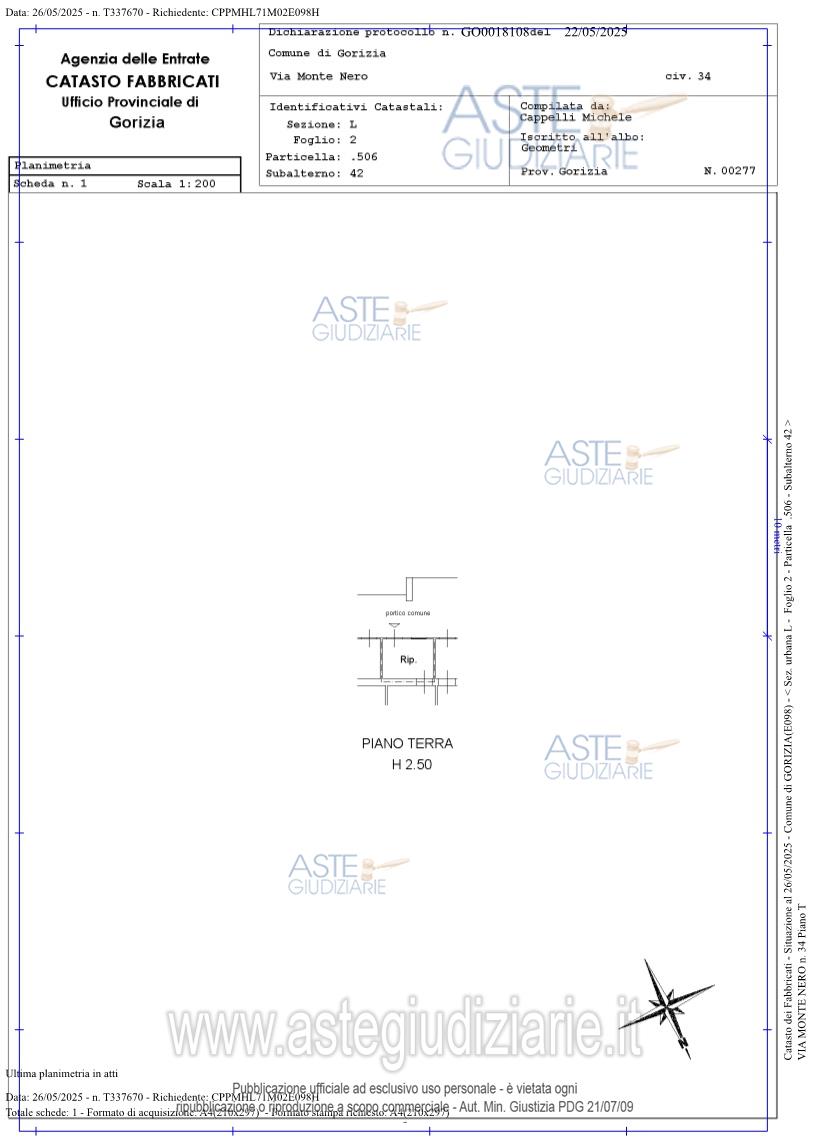 Vendita all'asta Senza incanto, con gara telematica sincrona mista - LOTTO UNICO: Cantina a Gorizia, via Monte Nero n. 34, quartiere S. Andrea, della superficie commerciale di 6,00 mq (ragguagliata 1,20 mq) per la quota di 1/1 di piena proprietà. Prezzo base € 1.140,00 (offerta minima € 855,00). Data vendita 04/11/2025 ore 12:30. Professionista delegato alla vendita Avv. Cristina Bertolano - Email "avvocato.bertolano@gmail.com"; Tel. 3470358484. Custode Giudiziario Avv. Cristina Bertolano - Email "avvocato.bertolano@gmail.com"; Tel. 3470358484. Rif. Tribunale di Gorizia - Espropriazione immobiliare (cartabia) n. 36/2024