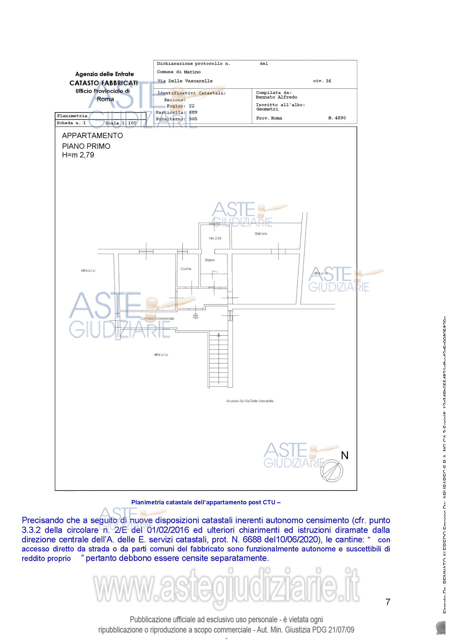 Vendita all'asta Senza incanto - LOTTO UNICO: Intera proprietà di appartamento al piano primo e cantina al piano seminterrato. Prezzo base € 33.918,75 (offerta minima € 25.439,06). Data vendita 05/05/2026 ore 15:00. Giudice Enrico Colognesi. Professionista delegato alla vendita Not. Andrea Mosca - Email "andrea.mosca@notariato.it"; Tel. 069638402. Custode Giudiziario Avv. Michela Del Monaco - Email "avv.micheladelmonaco@gmail.it"; Tel. 0696498956. Rif. Tribunale di Velletri - Esecuzione immobiliare post legge 80 n. 295/2020