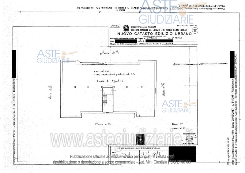 Vendita all'asta Senza incanto, con gara telematica asincrona - LOTTO 2: locali di deposito. Prezzo base € 67.200,00 (offerta minima € 50.400,00). Data inizio operazioni di vendita: 14/04/2026 ore 10:00. Professionista delegato alla vendita Avv. Lucia Peccia - Email "peccialucia@libero.it". Custode Giudiziario Avv. Lucia Peccia - Email "peccialucia@libero.it". Rif. Tribunale di Cassino - Esecuzione immobiliare post legge 80 n. 214/2016
