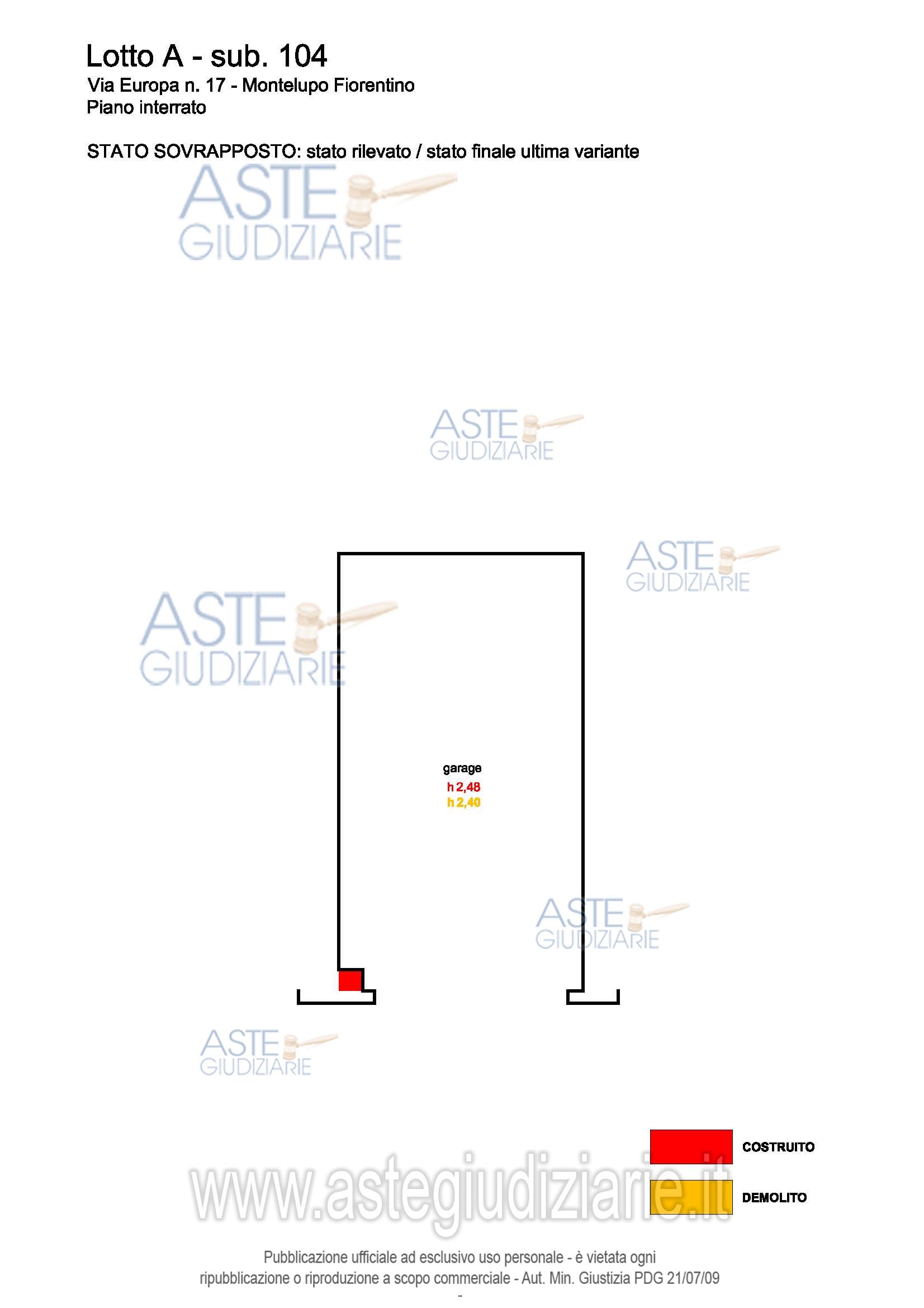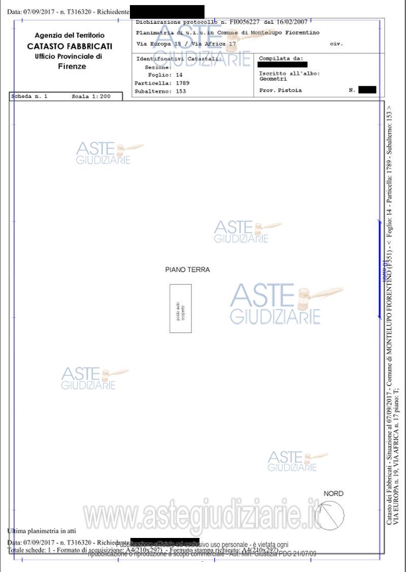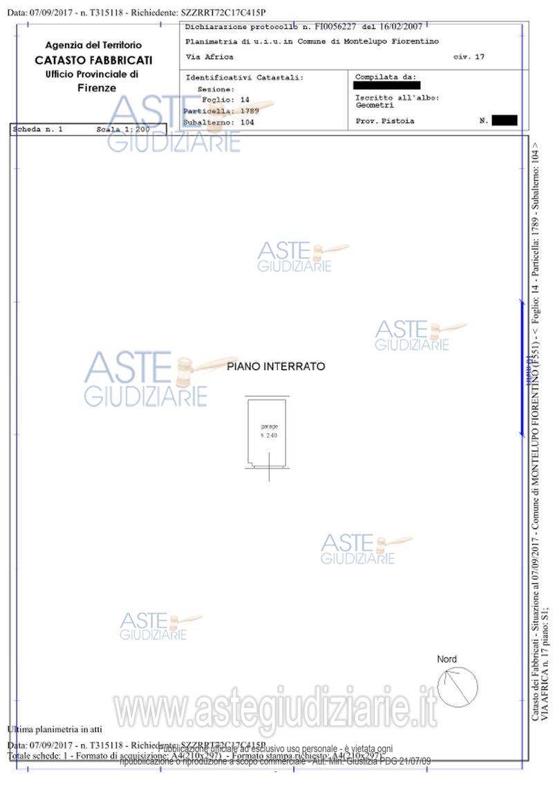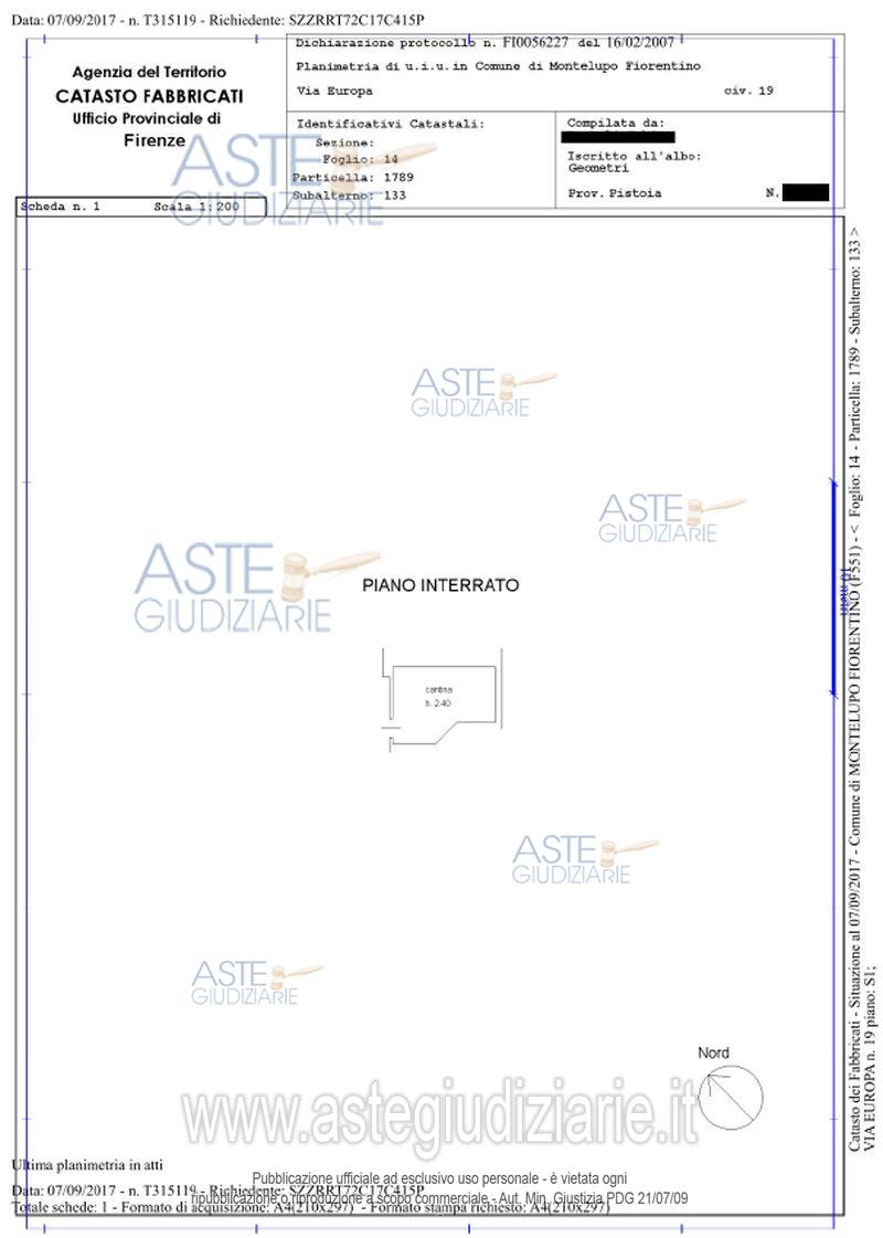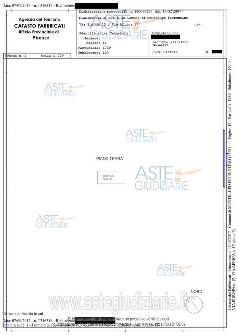Vendita all'asta Senza incanto, con gara telematica sincrona mista - LOTTO 7: LOTTO 7 D - CANTINA UBIACATA AL DI SOTTO DELLA SCALA CONDOMINIALE 3,56 MQ H 1,5. LOTTO 7 G - POSTO AUTO SCOPERTO NEL PIAZZALE CONDOMINIALE, 10,73 MQ. Prezzo base € 2.250,00 (offerta minima € 1.687,50). Data vendita 28/05/2026 ore 10:30. Giudice Dott. Rosa Selvarolo. Professionista delegato alla vendita Dott. Alessandro Torcini - Email "torcini@dottoricommercialisti.it". Custode Giudiziario Dott. Andrea Mantelli - Email "mantelli@dottoricommercialisti.it"; Tel. 057172755. Curatore Dott. Gaia Ceccherini - Email "gaia.ceccherini@gmail.com". Rif. Tribunale di Firenze - Fallimentare (nuovo rito) n. 76/2017