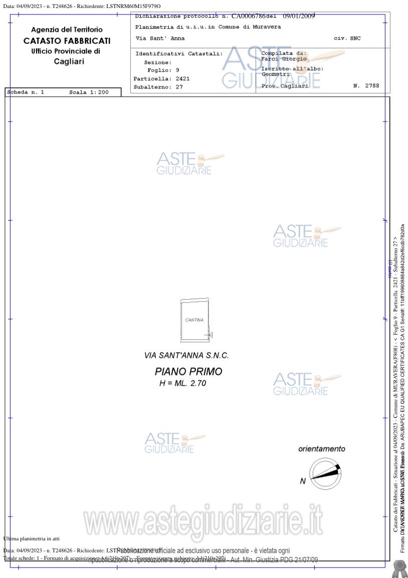 Vendita all'asta Senza incanto, con gara telematica asincrona - LOTTO 9: Lotto 9 - quota pari a 1/1 diritto di proprietà cantina. Prezzo base € 3.408,00 (offerta minima € 2.556,00). Data inizio operazioni di vendita: 10/02/2026 ore 15:00. Giudice Silvia Cocco. Professionista delegato alla vendita Avv. Valentina Manca - Email "studioleddamanca@gmail.com"; Tel. 070651012. Custode Giudiziario Ivg Cagliari - Email "ivg.visiteimmobili@tiscali.it"; Tel. 0702299036. Rif. Tribunale di Cagliari - Esecuzione immobiliare post legge 80 n. 328/2021