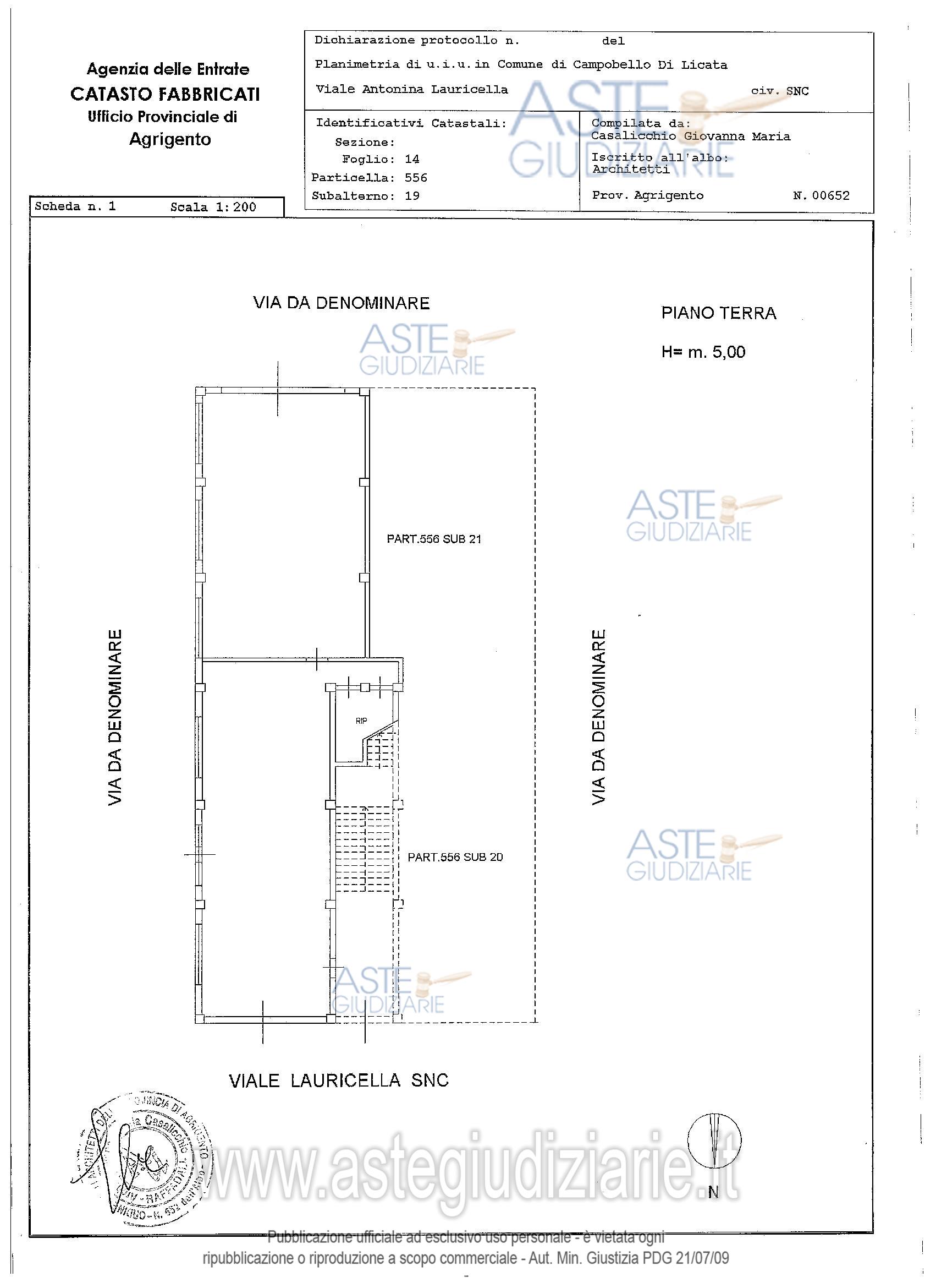 Vendita all'asta Senza incanto, con gara telematica sincrona mista - LOTTO 4541509: Magazzino di mq 193 sito in Ravanusa in viale Lauricella snc, piano terra, identificato al Catasto del Comune di Campobello di Licata al Foglio 14, Part. 556 sub 19, Cat. C/2, classe 5, 193 mq. Presenta irregolarità urbanistiche, edilizie e catastali regolarizzabili secondo quanto indicato nella perizia a firma dell’Arch. Giovanna Casalicchio del 05/01/2015. Prezzo base € 16.895,00 (offerta minima € 12.671,25). Data vendita 12/05/2026 ore 09:00. Giudice Vitalba Pipitone. Professionista delegato alla vendita Avv. Valeria Ciancimino - Email "ciancimino.legal@virgilio.it". Custode Giudiziario Avv. Valeria Ciancimino - Email "ciancimino.legal@virgilio.it". Rif. Tribunale di Agrigento - Esecuzione immobiliare post legge 80 n. 179/2013