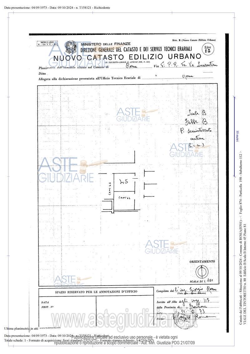 Vendita in attesa dell'emissione del nuovo bando d'asta. LOTTO 7: Quota pari a 100/100 del diritto di proprietà su: Cantina posta al piano del sottosuolo dell'edificio sito in Roma, con accesso da Viale del Tintoretto 88, edificio B, scala B e identificata con il numero interno 45. Ultimo prezzo base € 6.000,00 (offerta minima € 4.500,00). Giudice Federica D'ambrosio. Professionista delegato alla vendita Avv. Francesco Carluccio. Custode Giudiziario I.V.G Di Roma S.R.L. Istituto Vendite Giudiziarie - Email "pubblicita@ivgroma.it"; Tel. 06 83751500. Rif. Tribunale di Roma - Espropriazione immobiliare (cartabia) n. 435/2023