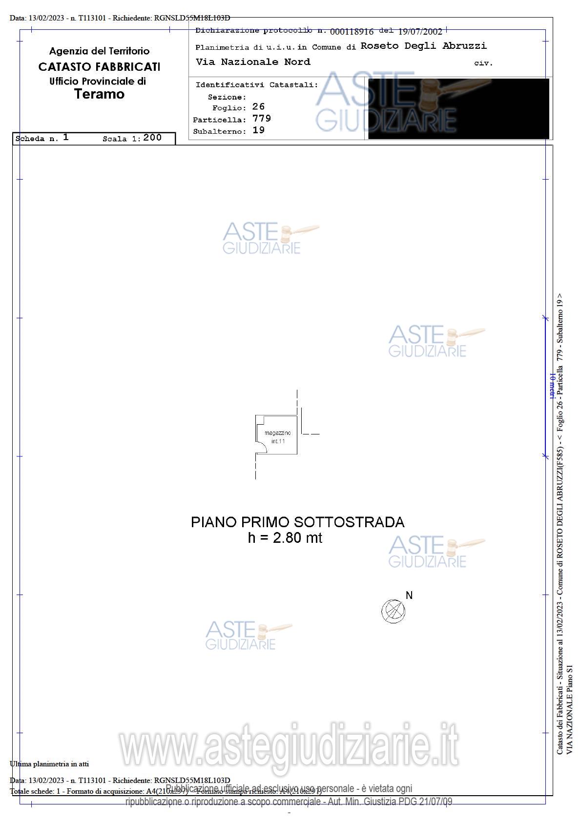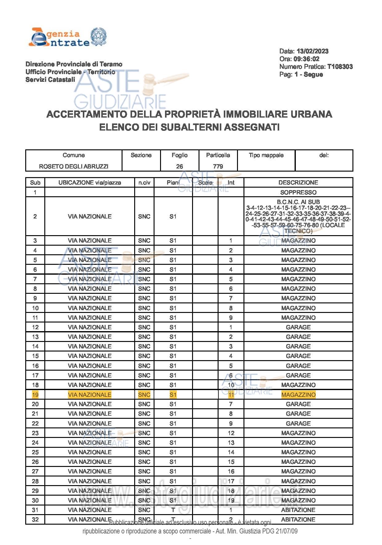 Vendita all'asta Senza incanto, con gara telematica asincrona - LOTTO 4: Diritti pari alla piena proprietà per la quota di 1/1 di magazzino sito in Roseto degli Abruzzi (TE), Via Nazionale n. 2/F, posto al pianto seminterrato int. 11, censito al Catasto Fabbricati del predetto Comune, al Foglio 26, p.lla 779, sub. 19, cat. C/2, Classe 2, Zona Cens. 1, Rendita € 35,95, superficie convenzionale mq 9,00.L'immobile, inserito in un contesto condominiale, risulta in discreto stato di manutenzione. Prezzo base € 3.000,00 (offerta minima € 3.000,00). Data inizio operazioni di vendita: 22/04/2026 ore 15:30. Giudice Flavio Conciatori. Custode Giudiziario Geom. Osvaldo Reginelli - Email "info@reginelliandpartners.com"; Tel. 0861587190. Curatore Avv. Caterina Crescenzo - Email "caterina.crescenzo@gmail.com"; Cell. 3485840594; Tel. 0861416166. Rif. Tribunale di Teramo - Fallimentare (nuovo rito) n. 39/2022