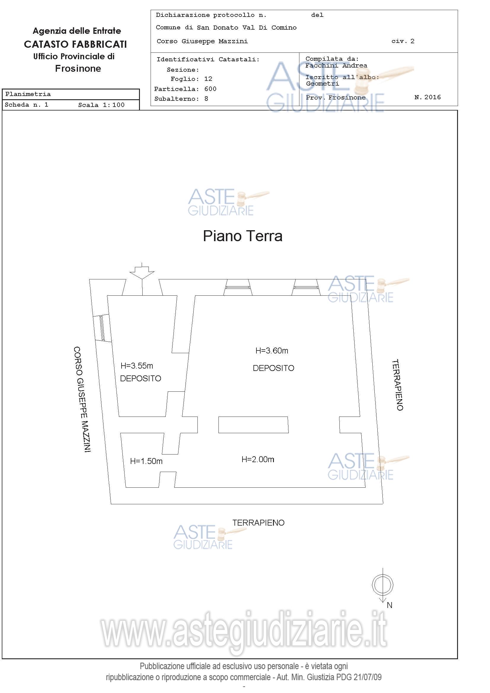 Vendita all'asta Senza incanto, con gara telematica asincrona - LOTTO 01: Magazzino ubicato a San Donato Val di Comino (FR) - Via Giuseppe Mazzini n.2 ,edificio 1, piano T. Prezzo base € 47.000,00 (offerta minima € 35.250,00). Data inizio operazioni di vendita: 09/06/2026 ore 15:00. Professionista delegato alla vendita Avv. Alessandra Mignanelli - Email "avv.alessandramignanelli@gmail.com"; Cell. 3408428433. Custode Giudiziario Avv. Alessandra Mignanelli - Email "avv.alessandramignanelli@gmail.com"; Cell. 3408428433. Rif. Tribunale di Cassino - Esecuzione immobiliare post legge 80 n. 150/2021