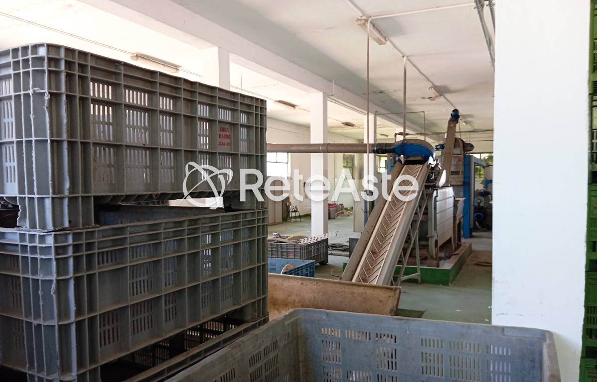 Die Halle beinhaltet verschiedene bewegliche Güter, die für die vorausgehende Tätigkeit funktional sind, darunter 166 "beans"-Körbe, eine Pieralisi M/2 Anlage (ohne Separator), 3 Transportbehälter, 1 Archivschrank, 16 Ölfässer, 3 Schreibtische und eine externe Waage von 25 Tonnen.