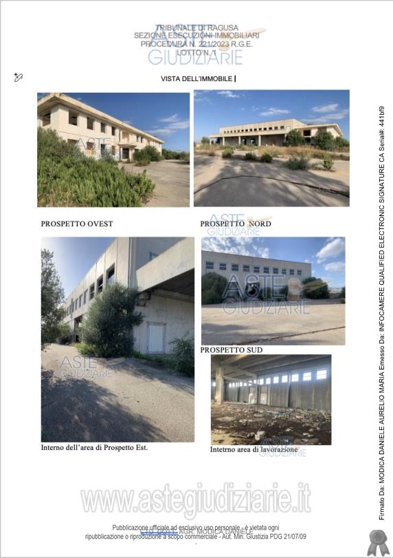 Vendita all'asta Senza incanto, con gara telematica sincrona mista - LOTTO UNICO: Diritto di proprietà su: Fabbricato con annesso cortile, Piano T-1, identificato al Catasto Edilizio Urbano della Provincia di Ragusa, Comune di Acate, al Foglio 54 Particella 513 sub 1, Cat. D10. Prezzo base € 895.928,90 (offerta minima € 671.946,68). Data vendita 26/05/2026 ore 10:00. Giudice Antonio Pianoforte. Professionista delegato alla vendita Avv. Giorgio Antoci - Email "giorgio.antoci@email.it". Custode Giudiziario Avv. Giorgio Antoci - Email "giorgio.antoci@email.it"; Tel. 09321912860. Rif. Tribunale di Ragusa - Espropriazione immobiliare (cartabia) n. 221/2023