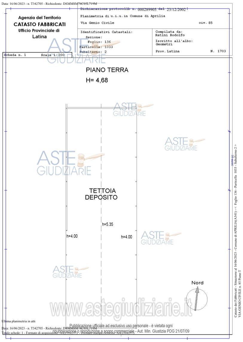 Vendita all'asta Senza incanto, con gara telematica asincrona - LOTTO UNICO: Negozio ubicato a Aprilia (LT) - via del Genio Civile, 85, piano T. Identificato al catasto Fabbricati - Fg. 136, Part. 1033, Sub. 1, Categoria C1. - Deposito ubicato a Aprilia (LT) - via del Genio Civile, 85, piano T. Identificato al catasto Fabbricati - Fg. 136, Part. 1033, Sub. 2, Categoria C2. Gli immobili vengono posti in vendita per il diritto di Proprietà (1/1). I beni presentano irregolarità urbanistiche per le quali si rimanda alla perizia. Prezzo base € 108.152,00 (offerta minima € 81.114,00). Data inizio operazioni di vendita: 16/12/2025 ore 11:00. Professionista delegato alla vendita Avv. Pierluigi Di Nunzio - Email "dinunzio.pierluigi@gmail.com"; Cell. 3408951662. Custode Giudiziario Avv. Pierluigi Di Nunzio - Email "dinunzio.pierluigi@gmail.com"; Cell. 3408951662. Rif. Tribunale di Latina - Esecuzione immobiliare post legge 80 n. 223/2022