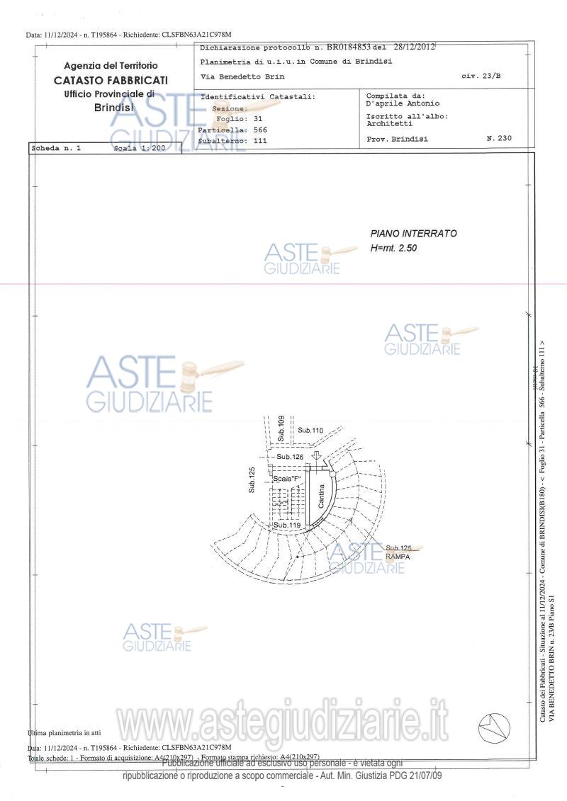 in Brindisi alla Via Benedetto Brin al civico 23/b. Fog.31 p.lla 566 sub 111).