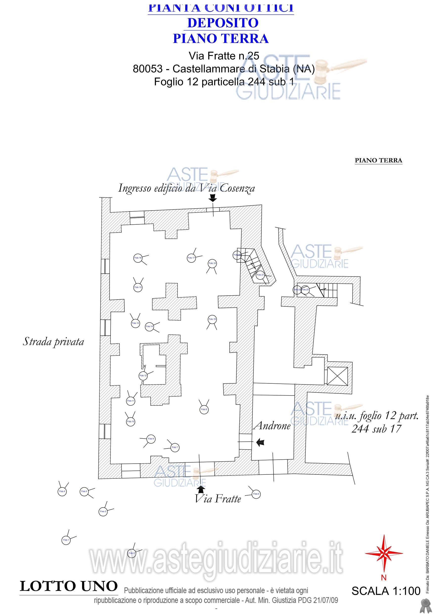 Vendita all'asta Senza incanto, con gara telematica asincrona - LOTTO 1: Piena ed intera proprietà di un locale di deposito posto al piano terra ubicato inCastellammare di Stabia (NA), alla Via Fratte n° 25 piano T. Prezzo base € 136.000,00 (offerta minima € 102.000,00). Data inizio operazioni di vendita: 31/03/2026 ore 14:30. Professionista delegato alla vendita Avv. Stefania Scotto Di Ciccariello - Email "stefania.scotto@alice.it"; Cell. 360414742; Tel. 360414742. Custode Giudiziario Avv. Stefania Scotto Di Ciccariello - Email "stefania.scotto@alice.it"; Cell. 360414742; Tel. 360414742. Rif. Tribunale di Torre Annunziata - Esecuzione immobiliare post legge 80 n. 88/2022
