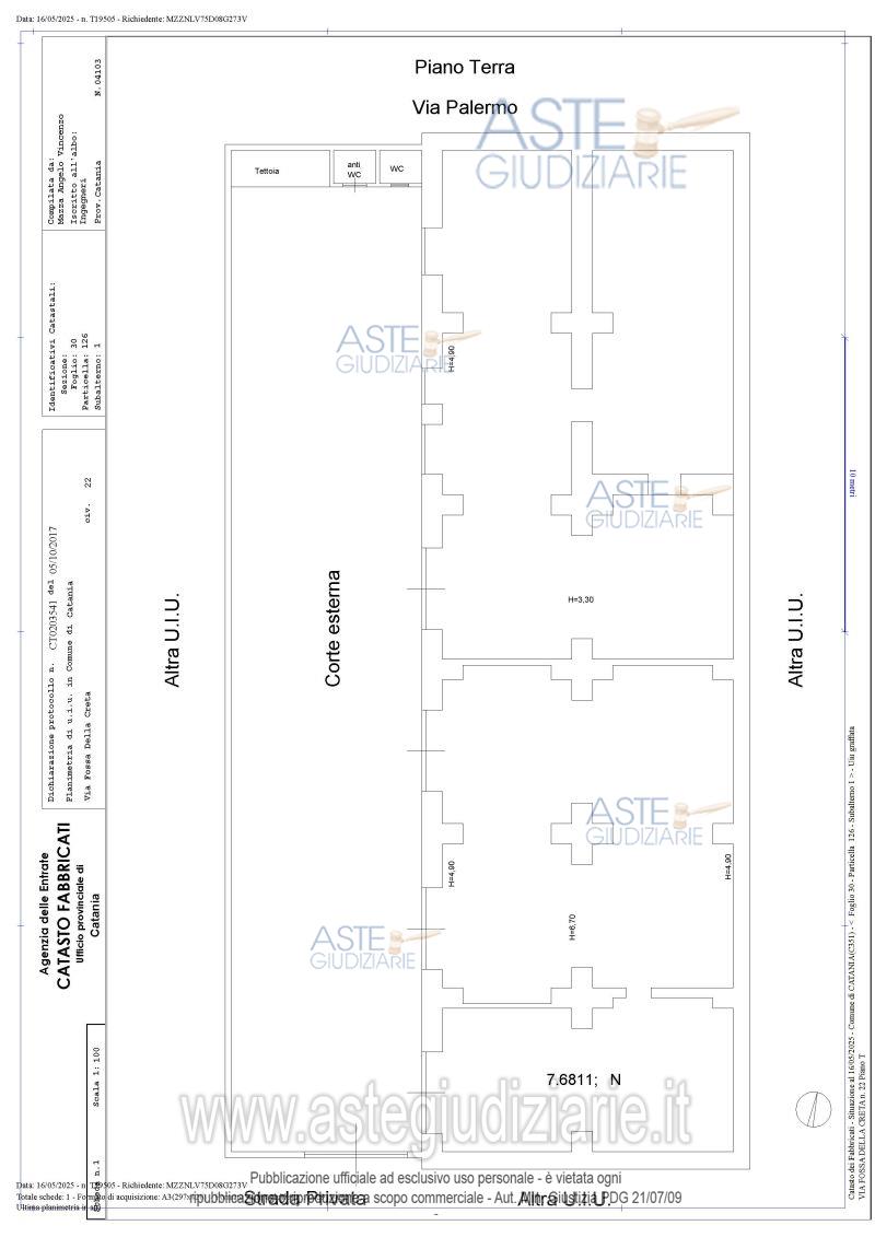 Vendita all'asta Senza incanto, con gara telematica asincrona - LOTTO UNICO: Piena ed intera proprietà del locale deposito sito in Catania, Via Fossa della Creta 22, distinto al NCEU al foglio 30, particella 126 sub 1 graffata con la part. 422, piano terra, cat. C/2, consistenza 282 mq, superficie catastale 418 mq, rendita catastale euro 393,23. Prezzo base € 36.283,00 (offerta minima € 27.212,00). Data inizio operazioni di vendita: 24/03/2026 ore 10:00. Giudice Fabio Letterio Ciraolo. Custode Giudiziario Avv. Gaetano Privitera - Email "avv.priviteragaetano@gmal.com"; Tel. 095361907. Curatore Avv. Gaetano Privitera. Rif. Tribunale di Catania - Fallimentare (nuovo rito) n. 209/2014