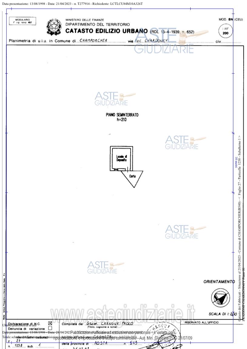 Vendita all'asta Senza incanto, con gara telematica sincrona mista - LOTTO 3: Locale di deposito sito in Champorcher (AO) Loc. Chardonney, della superficie commerciale di 5,00 mq per la quota di 1/1 di nuda proprietà. Prezzo base € 9.000,00 (offerta minima € 6.750,00). Data vendita 20/05/2026 ore 10:00. Professionista delegato alla vendita Avv. Davide Rossi - Email "d.rossi@studiodaviderossi.it". Custode Giudiziario Avv. Davide Rossi - Email "d.rossi@studiodaviderossi.it"; Tel. 0165060199. Rif. Tribunale di Aosta - Esecuzione immobiliare post legge 80 n. 14/2023
