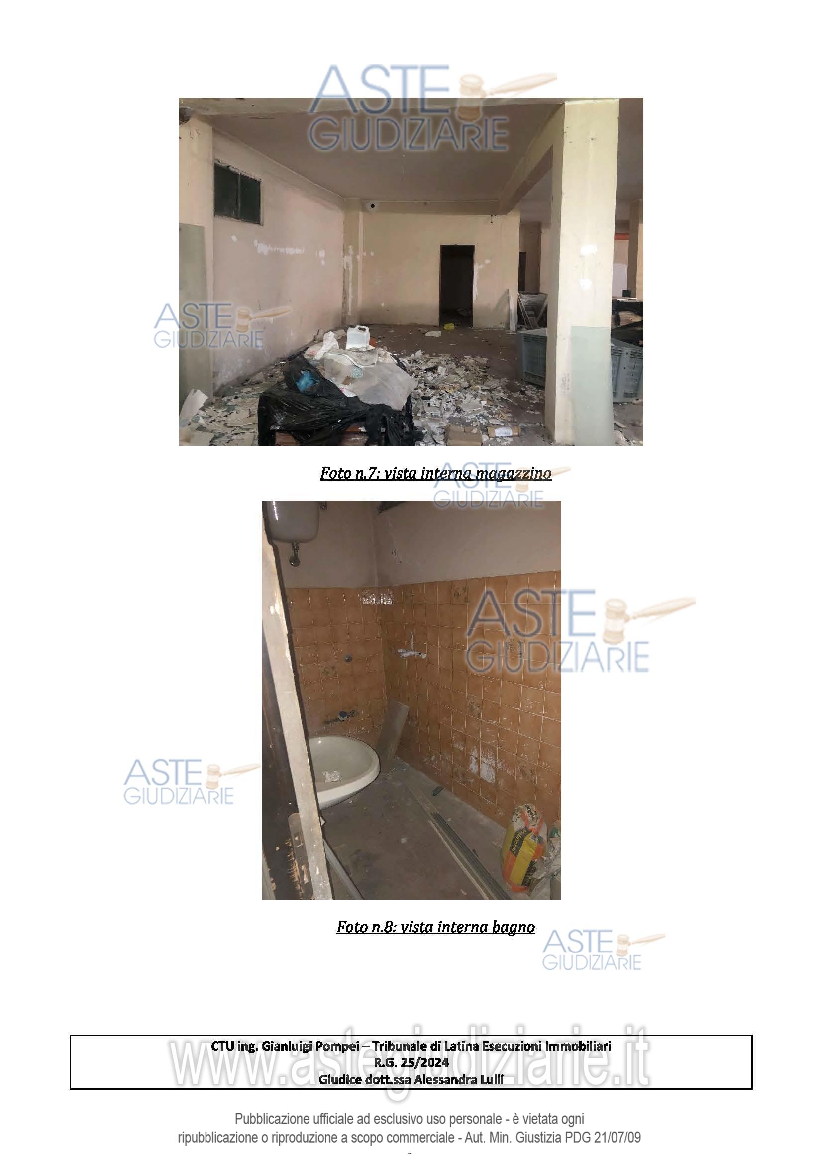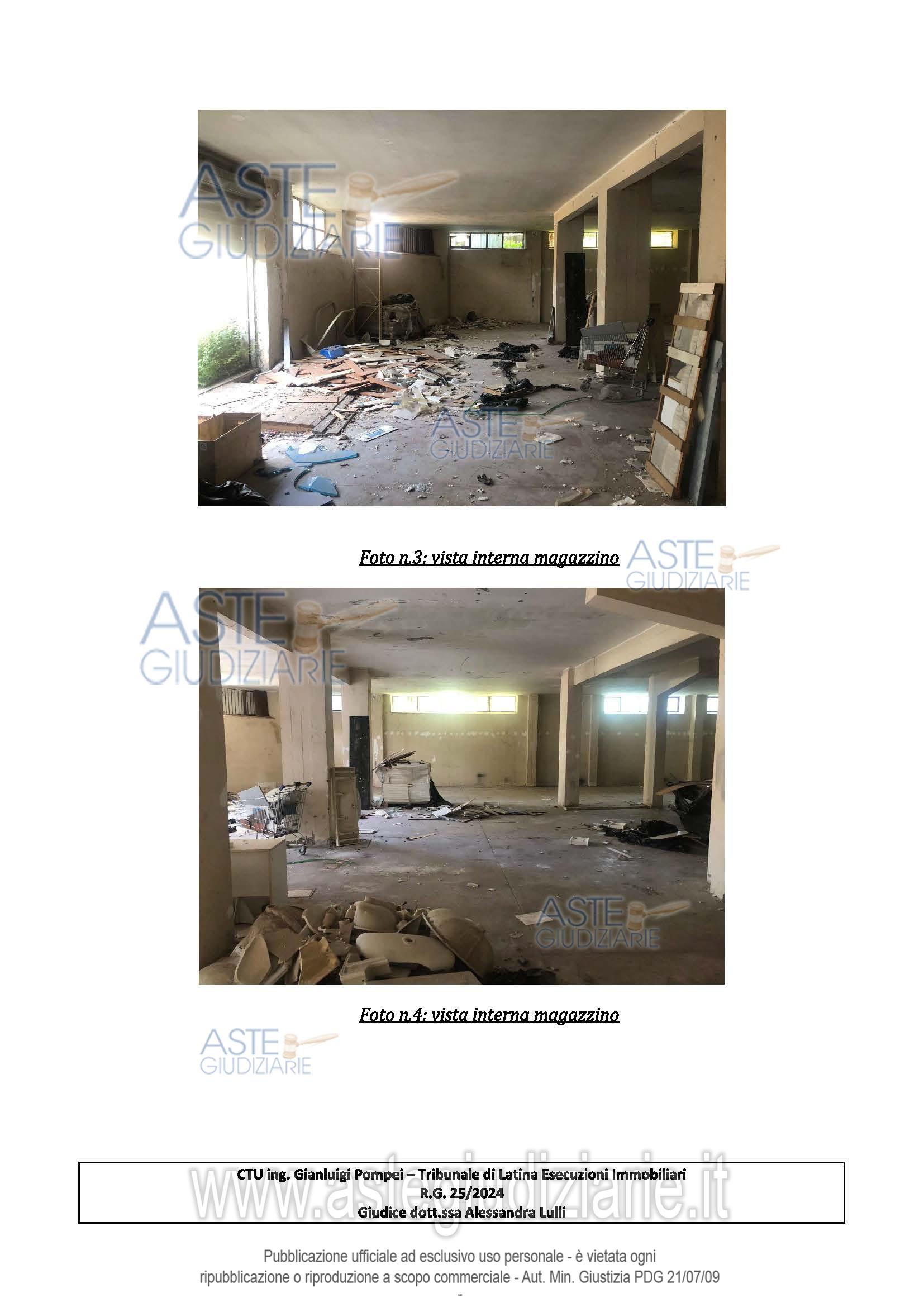 Vendita all'asta Senza incanto, con gara telematica asincrona - LOTTO 2: Piena ed esclusiva proprietà di locale magazzino ubicato a Cisterna di Latina (LT) - via Appia n.75 km 50,50, interno B1, piano S1 costituito da un ampio locale magazzino, depositi ed un bagno. Prezzo base € 47.198,00 (offerta minima € 35.400,00). Data inizio operazioni di vendita: 24/02/2026 ore 11:00. Giudice Alessandra Lulli. Professionista delegato alla vendita Avv. Diego Maria Santoro - Email "legalisantorofisichella@gmail.com"; Cell. 3804158875. Custode Giudiziario Avv. Diego Maria Santoro - Email "legalisantorofisichella@gmail.com"; Cell. 3804158875. Rif. Tribunale di Latina - Espropriazione immobiliare (cartabia) n. 25/2024