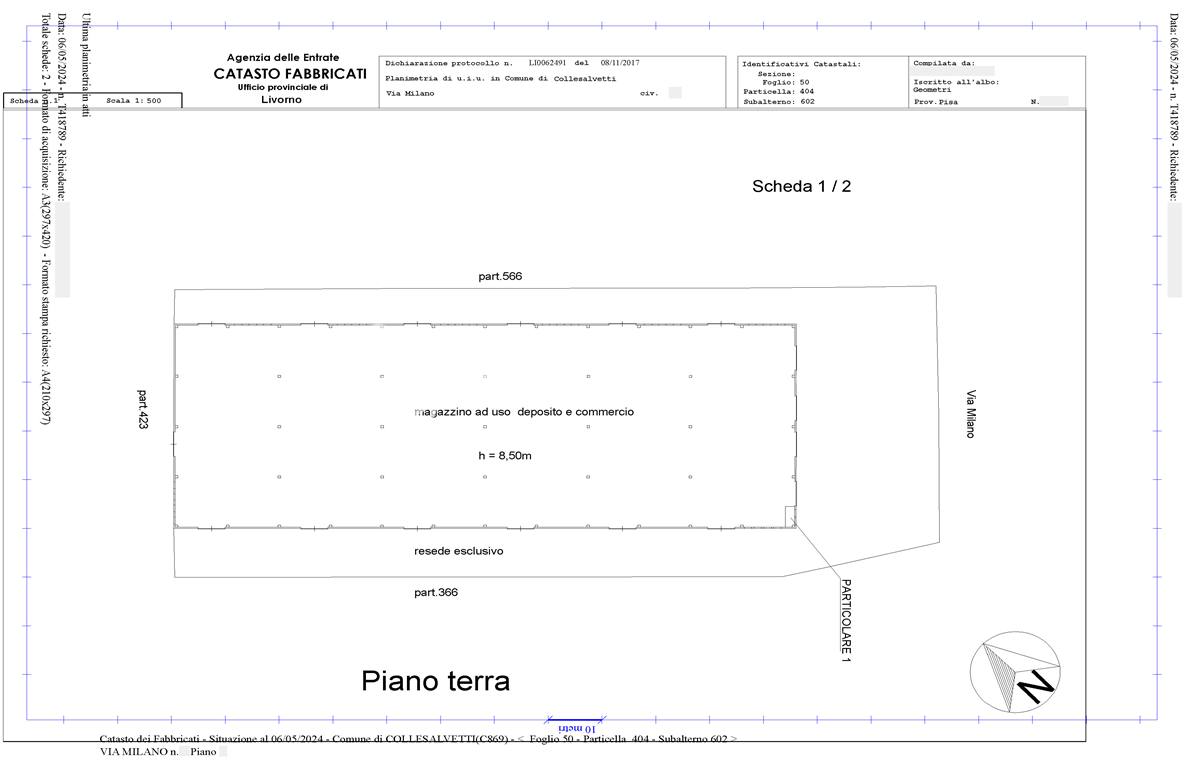 Объявление аукциона по данной продаже будет вскоре опубликовано. Торговый склад с маневровой площадкой в Коллесальветти, в районе Ла Кьюза, важном узле в глубинке Тосканы, расположенном вдоль автострады 206, соединяющей Чечину с Пизой. Стратегическое расположение всего в 17 км от аэропорта Пизы и порта Ливорно, обслуживаемого ФИ-ПИ-ЛИ и автомагистралью, соединяющей Геную и Розиньяно Мариттимо, делает это место значимым перекрёстком для транспорта и торговли. Район Ла Кьюза в основном предназначен для производственной и ремесленной деятельности, с почти исключительной концентрацией промышленных складов. Хорошо развитая дорожная сеть облегчает движение тяжёлых грузовиков, делая его идеальным для коммерческих и логистических операций. Продаёмый склад состоит из двух смежных и соединённых блоков, полностью развёрнутых на одном уровне. С двумя автомобильными и пешеходными въездами на улицу Милано обеспечен удобный доступ и распределение товаров. Собственность также включает в себя большую открытую площадь для манёвров и парковки, которая также является удобным местом для логистических операций. В настоящее время используется как склад и оптовая торговля широким ассортиментом товаров, свежих и замороженных продуктов, склад имеет крытую площадь 11 300 квадратных метров, плюс около 10 300 квадратных метров эксклюзивных дворов. Обе части склада смежны и взаимосвязаны, но структурно автономны, размеры соответственно 117,60 метров длиной и 42,50 метров шириной и 8,50 метра высотой, и 148 метров длиной и 42,50 метров шириной и 10 метров высотой. Общий состояние поддерживается в достаточно хорошем состоянии, что подтверждает качество и функциональность этой собственности.