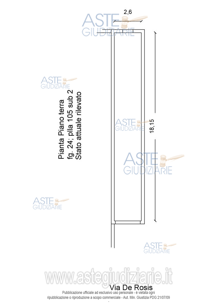 Vendita all'asta Senza incanto, con gara telematica sincrona - LOTTO 3: Deposito artigianale, per la quota di 1/1 di piena proprietà, individuato al N.C.E.U. al foglio di mappa n.24 particella n. 105 subalterno 2, categoria C2. Prezzo base € 7.219,69 (offerta minima € 5.414,77). Data vendita 25/11/2025 ore 11:00. Giudice Giuliana Gaudiano. Professionista delegato alla vendita Dott. Domenica Gallo - Email "gallodomenica@gmail.com". Custode Giudiziario Dott. Domenica Gallo - Email "gallodomenica@gmail.com"; Tel. 0983886432. Rif. Tribunale di Castrovillari - Espropriazione immobiliare (cartabia) n. 118/2023