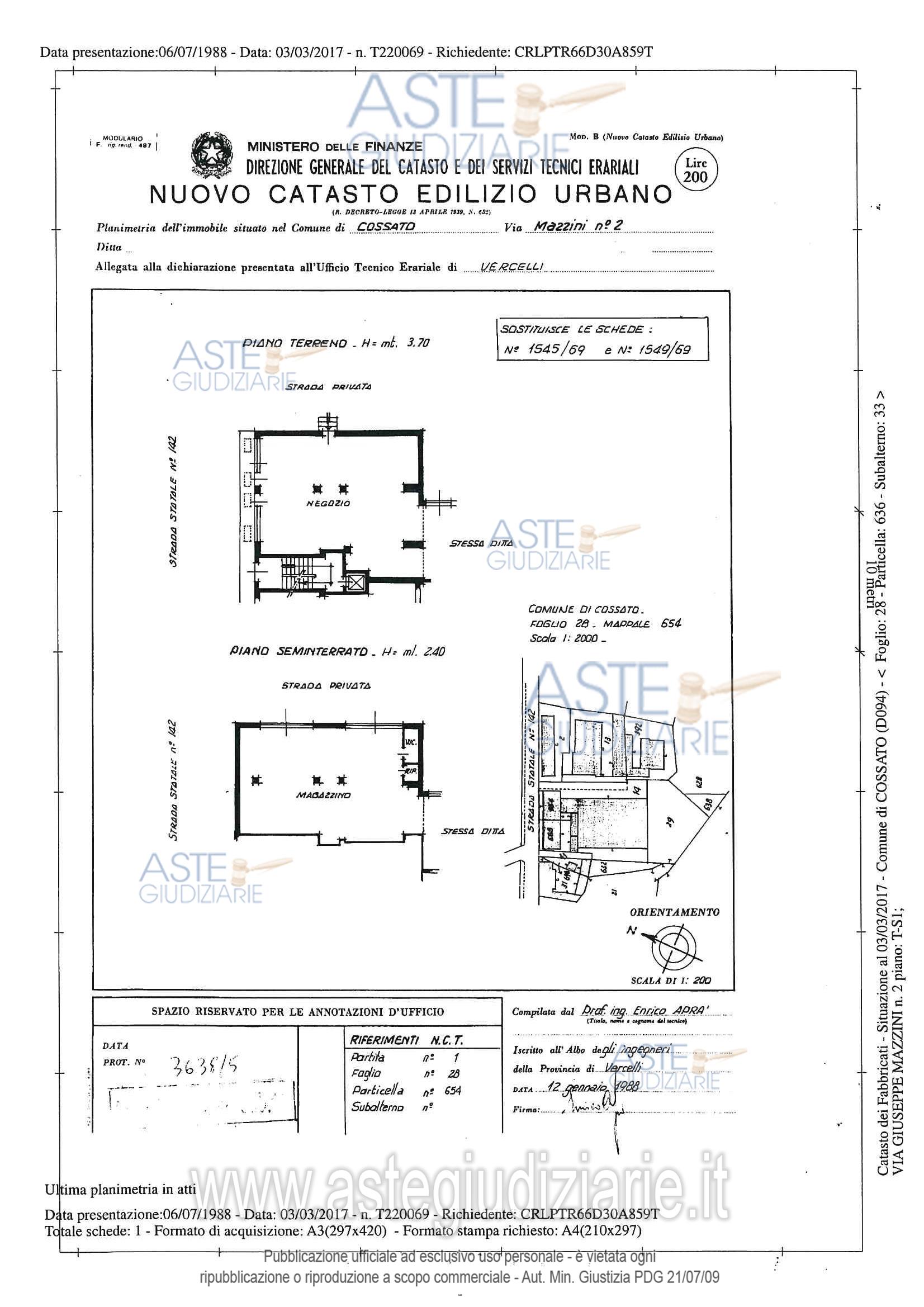 Vendita in attesa dell'emissione del nuovo bando d'asta. LOTTO 19: Locale ad uso magazzino; Locale ad uso negozio; Locali ad uso magazzino e controllo peso, al