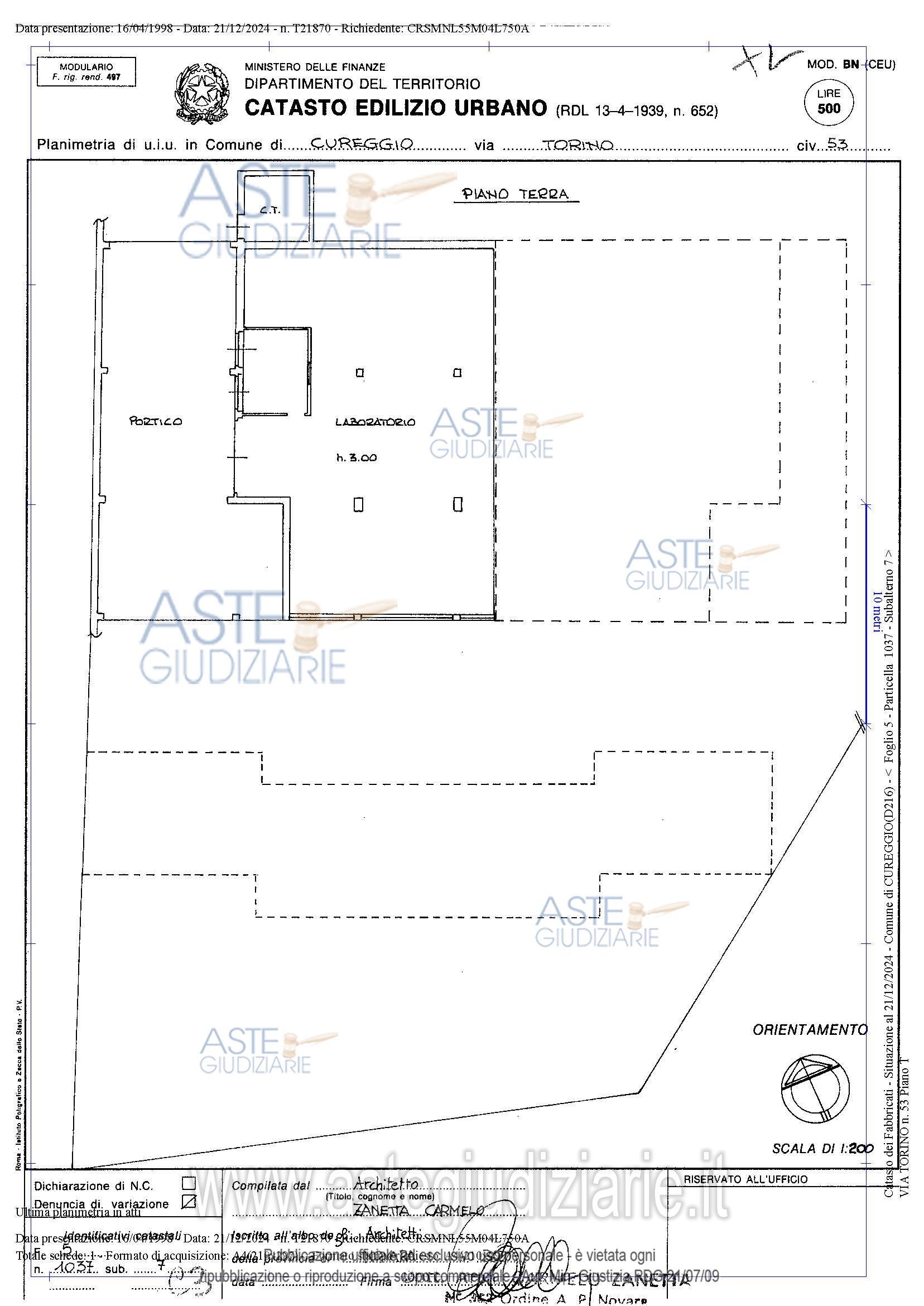 Vendita all'asta Senza incanto, con gara telematica asincrona - LOTTO UNICO: In Comune di Cureggio - Via Torino n. 137, Piena proprietà di LABORATORIO AL PIANO TERRA superficie utile di mq. 296,16, superficie commerciale di mq. 231,93 - AUTORIMESSE superficie utile di mq. 35,70, superficie commerciale di mq. 40,47 - LOCALI DI DEPOSITO E RIPOSTIGLIO superficie utile di mq. 38,88, superficie commerciale di mq. 43,66. Prezzo base € 47.307,00 (offerta minima € 35.480,25). Data inizio operazioni di vendita: 08/05/2026 ore 12:00. Professionista delegato alla vendita Not. Emanuele Caroselli - Email "ecaroselli@notariato.it"; Tel. 032134330. Rif. Tribunale di Novara - Contenzioso civile n. 807/2023