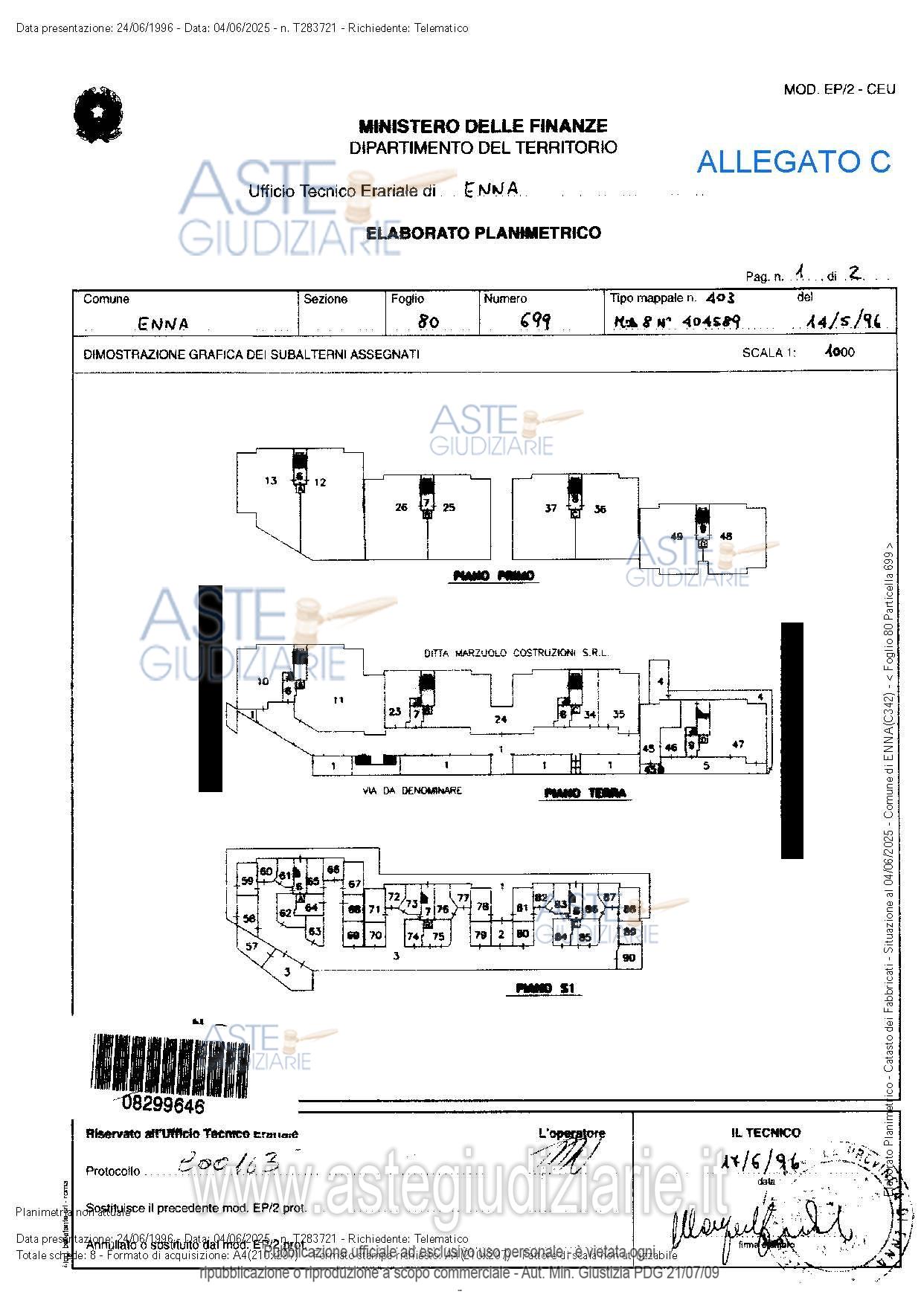 Vendita all'asta Senza incanto, con gara telematica asincrona - LOTTO 2: Full ownership of the storage room on the fourth floor in the "Ennadue" complex building 3. Prezzo base € 825,00 (offerta minima € 618,75). Data inizio operazioni di vendita: 13/05/2026 ore 11:00. In caso di più offerte valide si procederà a gara che inizierà il 13/05/2026 ore 11:00 e terminerà il 13/05/2026 ore 11:00. Giudice Dott. Davide Naldi. Custode Giudiziario Aste Giudiziarie Inlinea S.P.A. - Email "vendite@astegiudiziarie.it"; Tel. 0586 201480. Curatore Dott. Giuseppe Antonio Lentini - Tel. 0922 553407. Rif. Tribunale di Enna - Fallimentare (nuovo rito) n. 13/2021