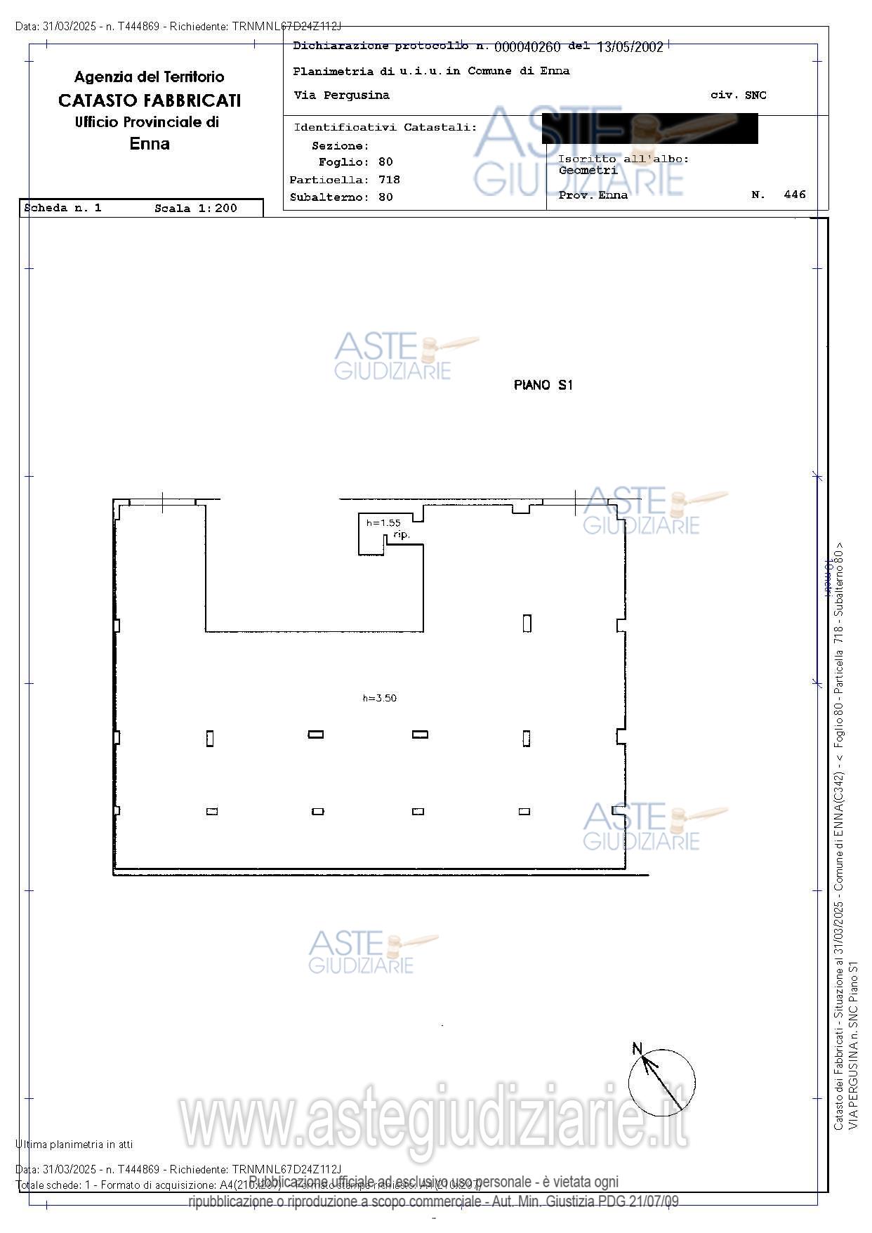Vendita all'asta Senza incanto, con gara telematica asincrona - LOTTO 3: Full ownership rights of the storage room on the fifth floor of the "Ennadue" complex building 4, with access from the communal landing of the fifth floor. Prezzo base € 825,00 (offerta minima € 618,75). Data inizio operazioni di vendita: 13/05/2026 ore 11:00. In caso di più offerte valide si procederà a gara che inizierà il 13/05/2026 ore 11:00 e terminerà il 13/05/2026 ore 11:00. Giudice Dott. Davide Naldi. Custode Giudiziario Aste Giudiziarie Inlinea S.P.A. - Email "vendite@astegiudiziarie.it"; Tel. 0586 201480. Curatore Dott. Giuseppe Antonio Lentini - Tel. 0922 553407. Rif. Tribunale di Enna - Fallimentare (nuovo rito) n. 13/2021