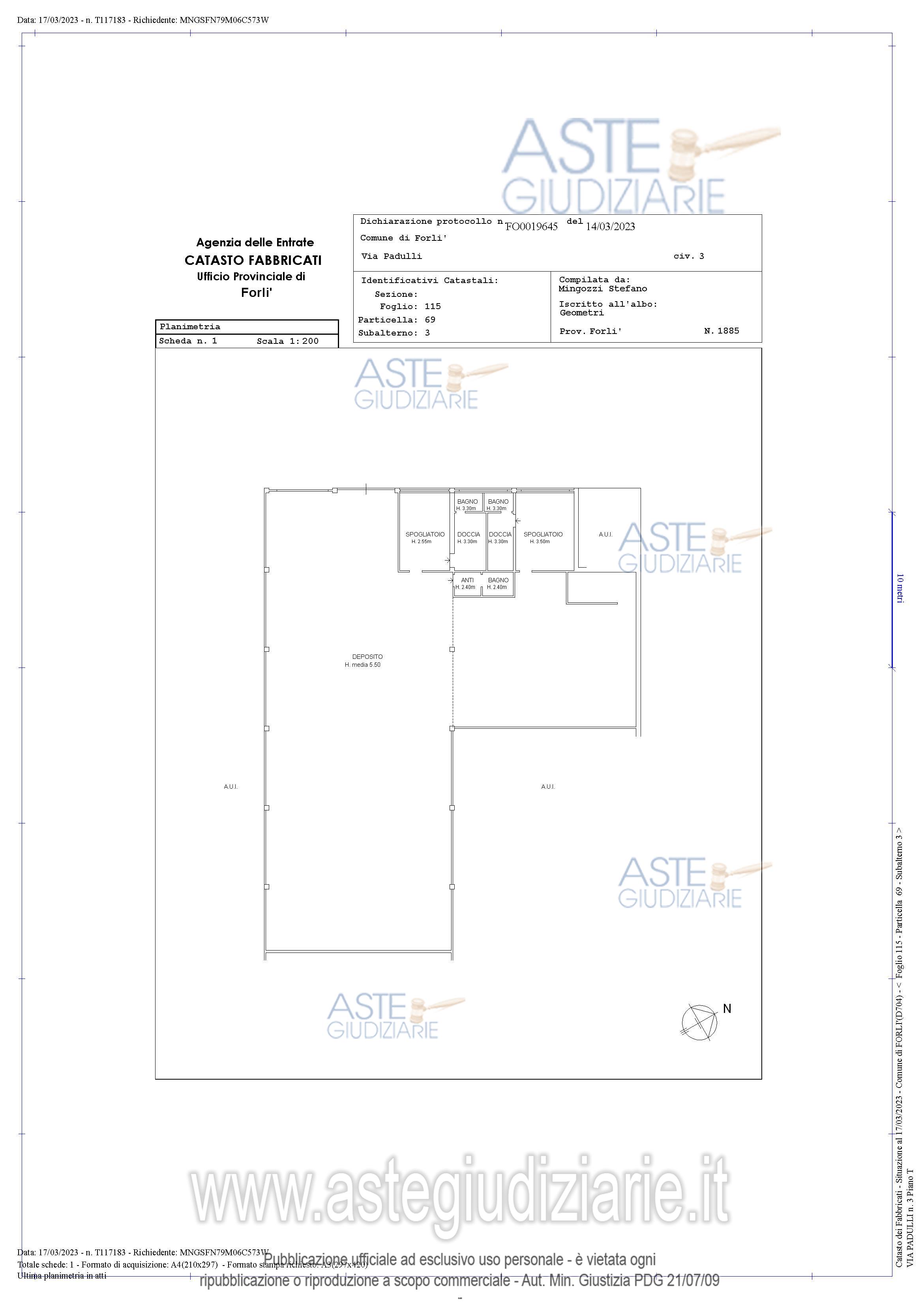 Vendita all'asta Senza incanto, con gara telematica asincrona - LOTTO 3: 1/1 di porzione di fabbricato commerciale disposta su un unico livello al piano terra e costituita da un maggiore locale ad uso deposito con adiacenti locali spogliatoio e servizi igienici (con docce), avente accesso dalla corte comune, oltre la comproprietà delle parti comuni come per legge. Stato di conservazione sufficiente. Superficie commerciale complessiva pari a mq. 560,66. Libero e nella disponibilità del Custode I.V.G. Forlì. Prezzo base € 143.000,00 (offerta minima € 107.250,00). Data inizio operazioni di vendita: 25/11/2025 ore 09:30. Giudice Fabio Santoro. Professionista delegato alla vendita Not. Antonella Odierna - Email "esecuzioninotai@gmail.com"; Tel. 054320059. Custode Giudiziario Ivg Forli’ Srl - Email "ivg.forli@gmail.com"; Tel. 0543473480. Rif. Tribunale di Forlì - Esecuzione immobiliare post legge 80 n. 222/2021