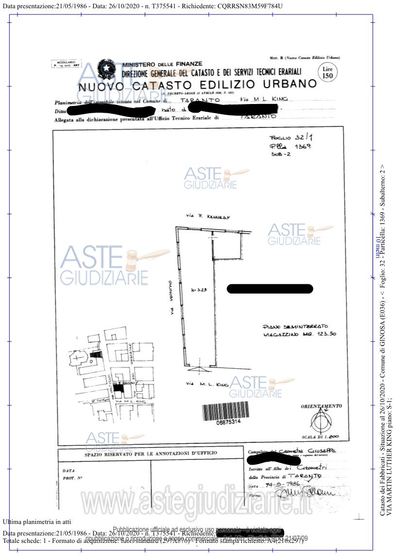 Vendita all'asta Senza incanto, con gara telematica asincrona - LOTTO 1: Locale deposito sito al piano terra costituito da un vasto ambiente di accesso e da ulteriore area ove trovasi una cisterna per la raccolta di acqua potabile a servizio del condominio di cui lo stesso fa parte. Prezzo base € 46.562,25 (offerta minima € 34.921,69). Data inizio operazioni di vendita: 02/12/2025 ore 16:00. Giudice Andrea Paiano. Professionista delegato alla vendita Avv. Rosanna Caiazzo. Custode Giudiziario Avv. Rosanna Caiazzo - Email "avvocatocaiazzo71@gmail.com". Rif. Tribunale di Taranto - Esecuzione immobiliare post legge 80 n. 44/2020