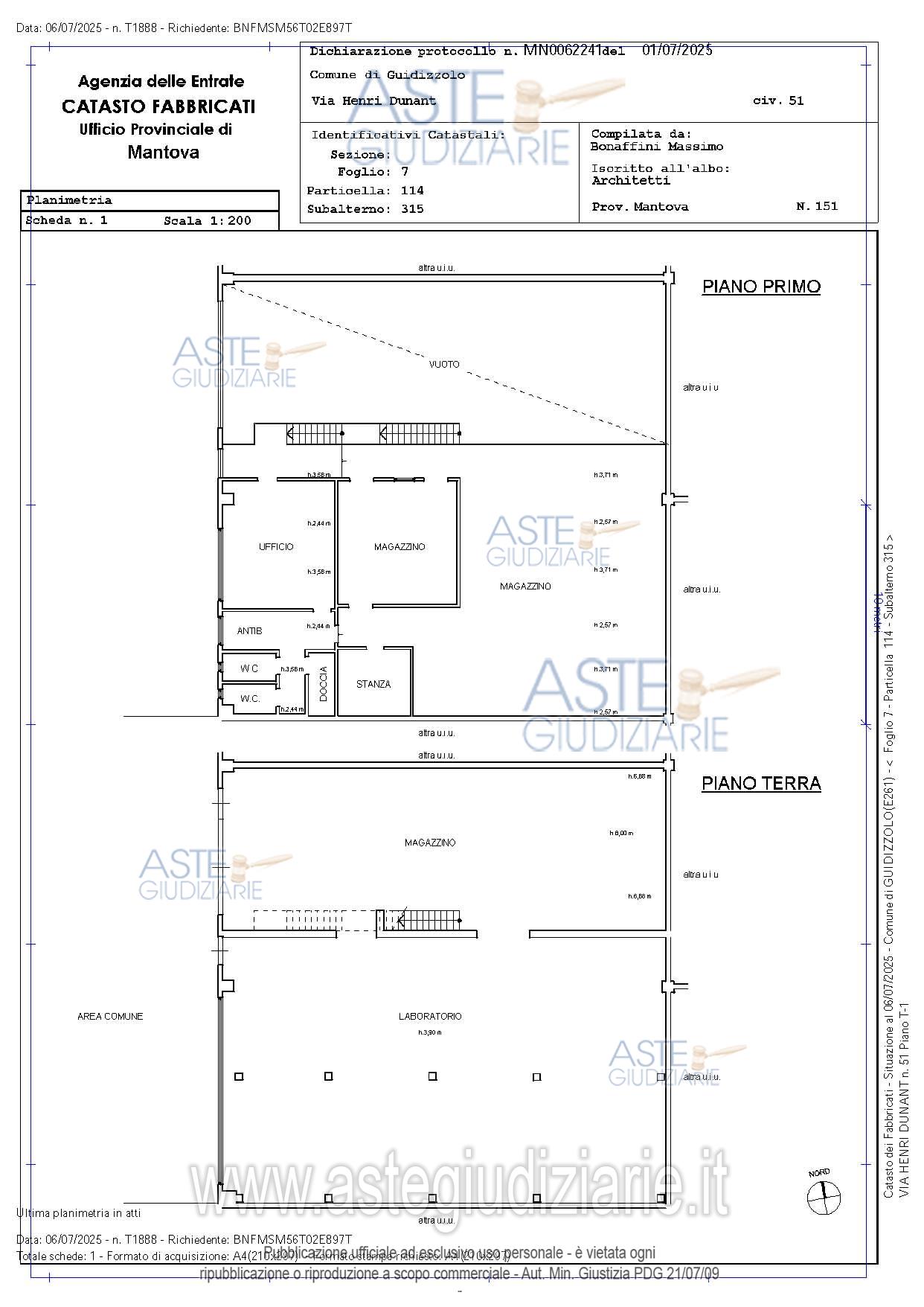 altezza e da un laboratorio (di mq. 411); dal piano terra si accede al primo piano attraverso una