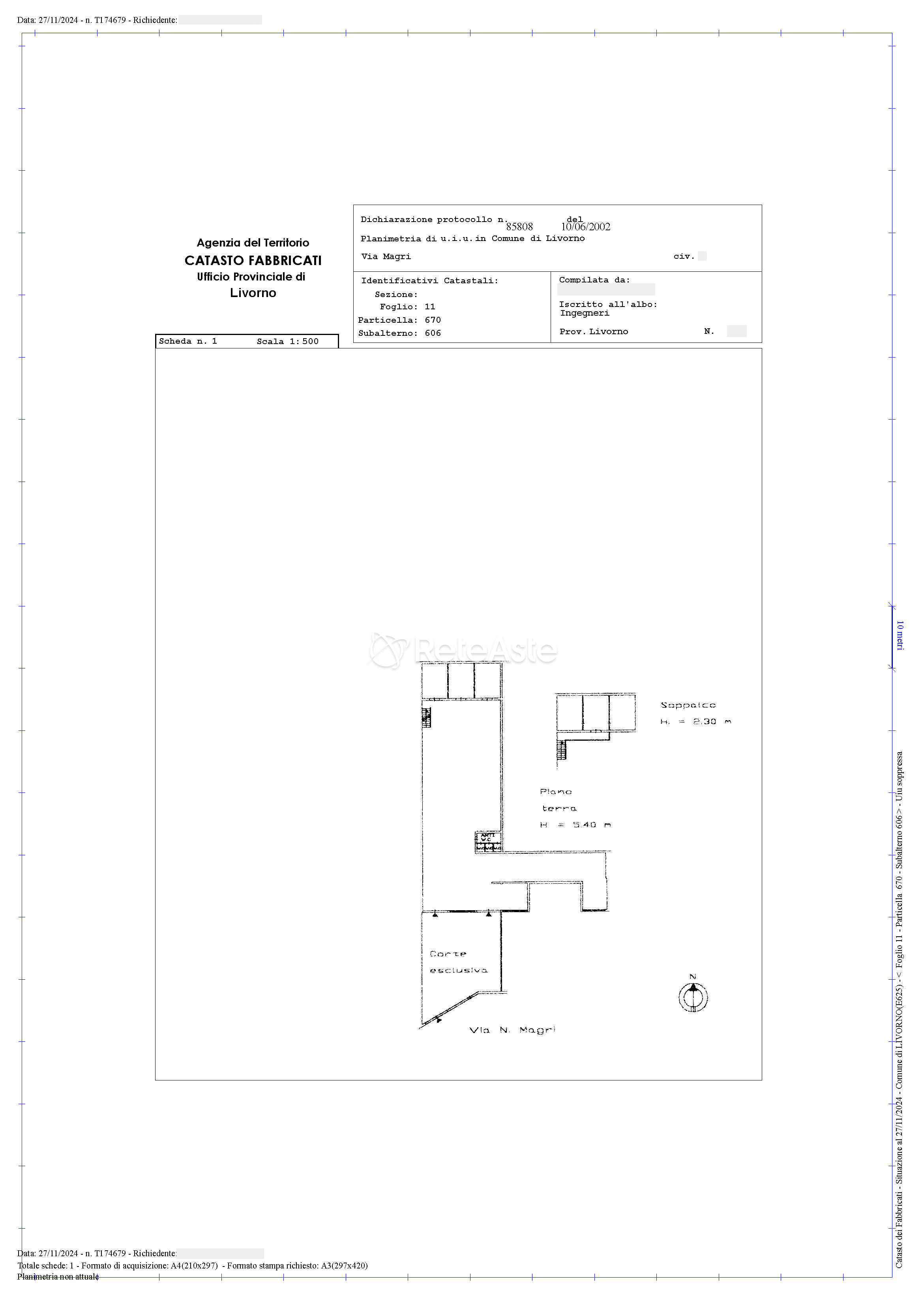 La proprietà include un resede esterno ad uso esclusivo di circa 188 mq, interamente asfaltato e recintato in muratura.