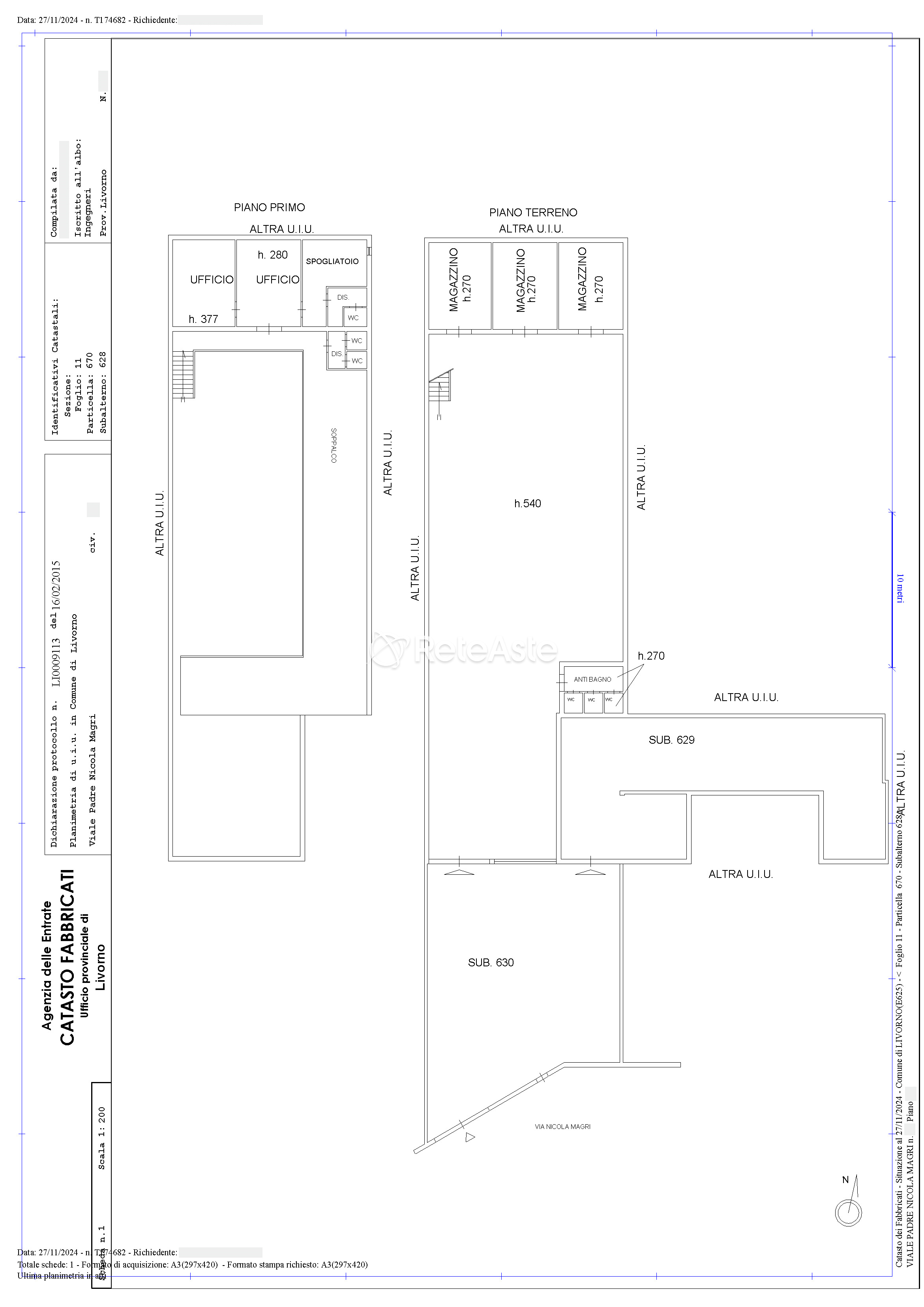 L'unità sub. 628, disposta su due livelli, è composta da un ampio locale di vendita ed uffici/magazzino al piano terra e locali pluriuso al piano soppalcato (primo) con struttura in ferro.