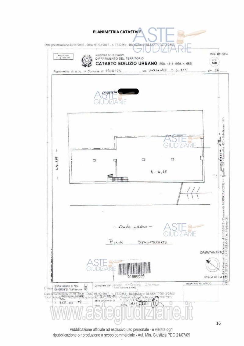 Vendita all'asta Competitiva - LOTTO 1: Immobile destinato a magazzino – deposito posto al piano seminterrato dell’edificio sito nel Comune di Modica nella contrada Treppiedi con ingresso dalla Via Circonvallazione Ortisiana. Prezzo base € 126.200,00 (offerta minima € 126.200,00). Data vendita 08/01/2026 ore 15:00. Rif. Tribunale di Ragusa - Nuovo concordato preventivo n. 3/2016