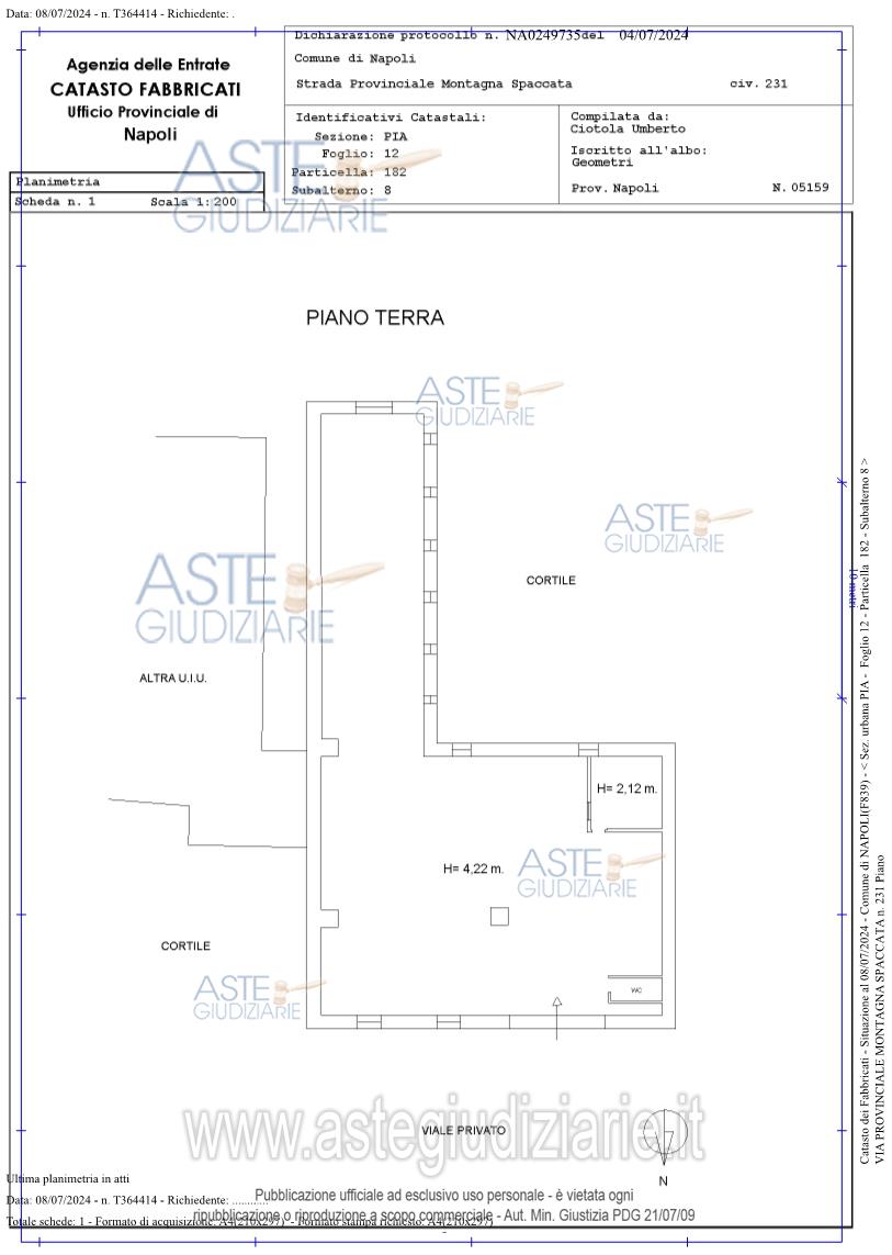 Vendita all'asta Senza incanto, con gara telematica asincrona - LOTTO UNICO: Locale terraneo in Napoli (NA) alla via Montagna Spaccata n. 231, composto da un unico ambiente con all'interno un piccolo ufficio ed un wc, della superficie catastale di circa 262 mq. Prezzo base € 141.750,00 (offerta minima € 106.312,50). Data inizio operazioni di vendita: 02/12/2025 ore 17:00. Professionista delegato alla vendita Avv. Stefano Vitale - Email "stefanovitale@studiolegalevitale.net"; Cell. 3389878810; Tel. 08118088520. Custode Giudiziario Avv. Stefano Vitale - Email "stefanovitale@studiolegalevitale.net"; Cell. 3389878810; Tel. 08118088520. Rif. Tribunale di Napoli - Contenzioso civile n. 19778/2010